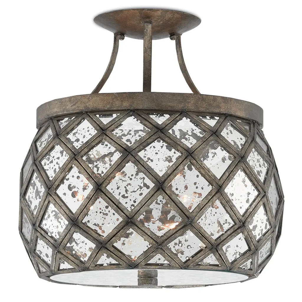 Currey & Company Buckminster 14.25" Bronze Semi-Flush Mount - Pyrite Bronze/raj Mirror - 14.75"h X 14.25"dia. - 14.75"h X 14.25"dia. - Pyrite Bronze/raj Mirror