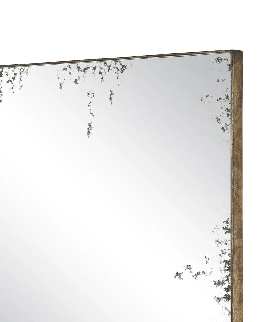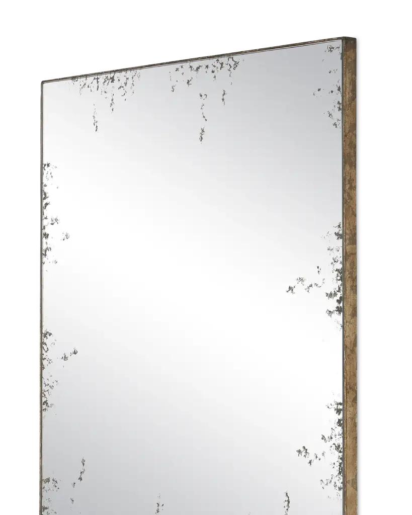With its frame pulled back to create a simplified silhouette, the antiqued surface of the Rene Rectangular Mirror is all the eye sees. The metal echoes the tone of the distressed edges of the mirror where they meet. Wipe clean with a soft, dry cloth or static duster. Always avoid the use of harsh chemicals or abrasive cleaners as they may cause damage to the item's finish. Due to the use of natural materials, handmade craftsmanship, or hand finishing, expect some color variances. Hand crafted pieces may have slight size differences.
