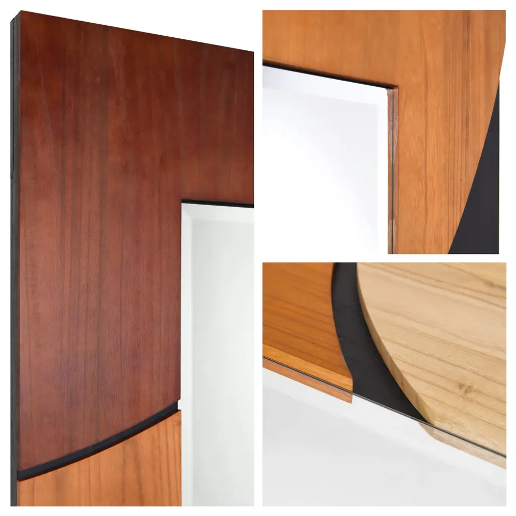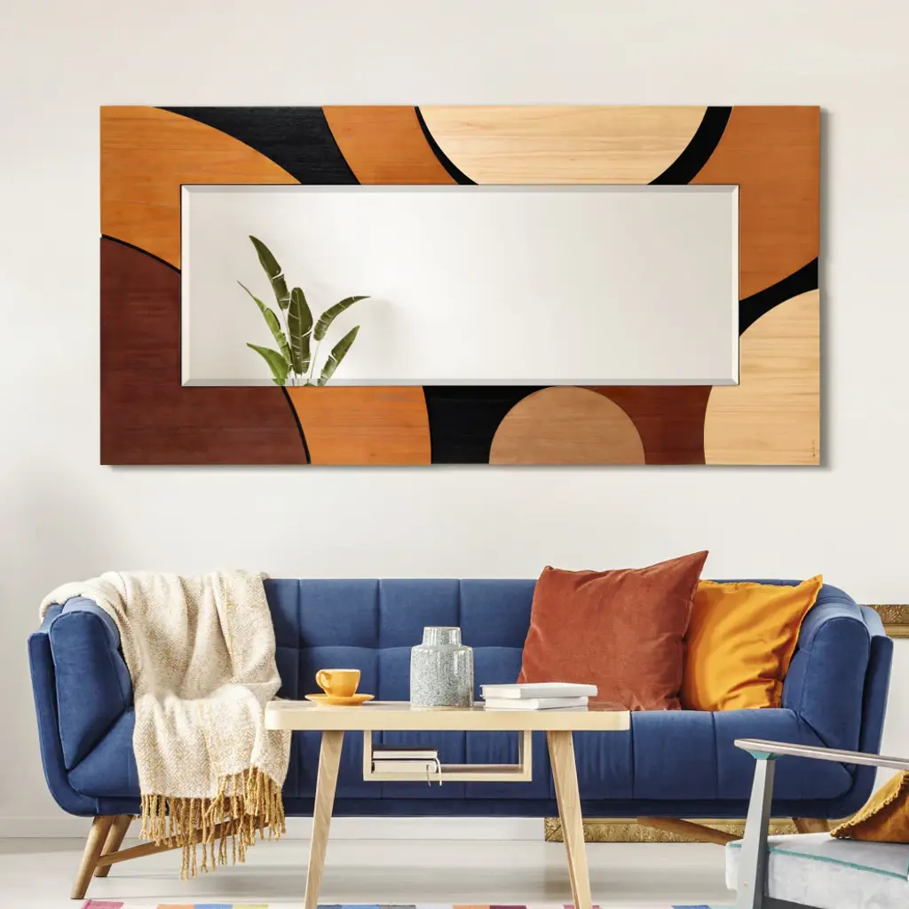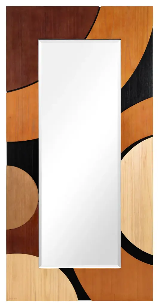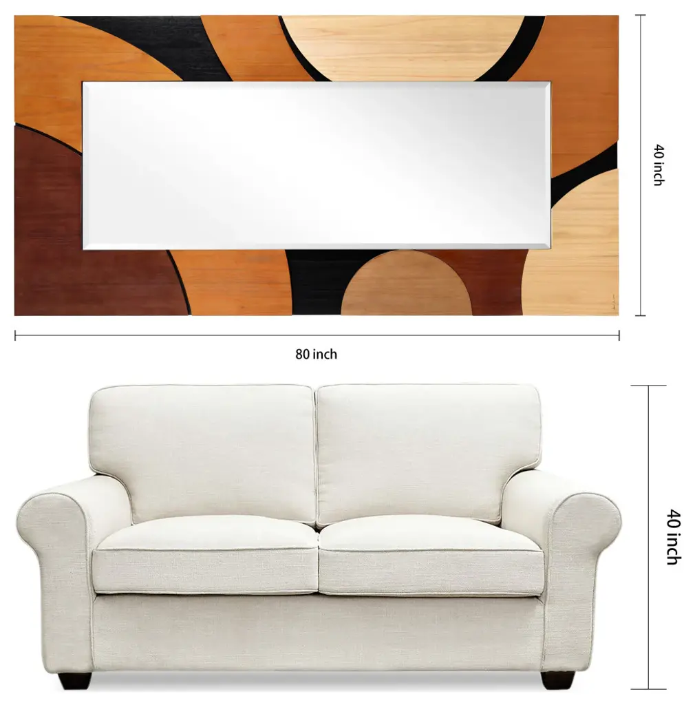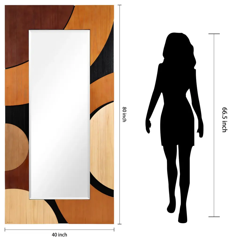 Introducing the "Curved Elegance Paulownia Mirror", a beautifully designed statement piece that combines artistry and functionality. Crafted from solid Paulownia wood, this mirror showcases a unique curved pattern, featuring a sophisticated color combination of Cinnamon, Dark Brown, and Sandy Taupe. The rich contrast of these earthy tones brings warmth and depth to any space, making it a versatile addition to various interior styles, from modern to transitional.Measuring 80"x40" with a 61.4"x22.1" beveled center mirror, this piece stands out for its elegance and quality craftsmanship. Designed by artist Jane Yu, who has personally signed the piece, this mirror is more than just a functional item??it''s a piece of art. The 3D solid Paulownia wood frame is lightweight yet durable, providing the perfect balance of aesthetics and durability.The mirror comes with 4 D-rings, allowing for both horizontal and vertical installation, making it easy to adapt to your space??s needs. The Curved Elegance Paulownia Mirror is perfect for hallways, living rooms, bedrooms, or any area where you want to create a focal point. With its modern design, sophisticated color palette, and high-quality materials, this mirror will elevate any room''s style while providing the functionality of a full-length mirror. Perfect for creating a refined look in your home, the Curved Elegance Paulownia Mirror is not only a reflection of your space but also a reflection of your style.