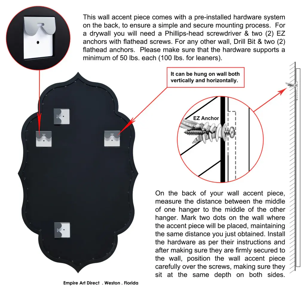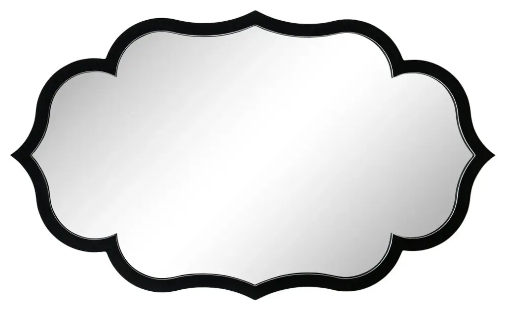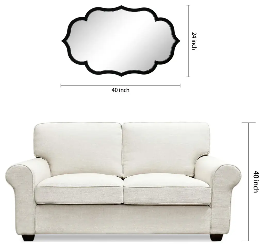 Picture a mirror, not just a reflection but a love story woven into its very frame. This generously sized mirror, measuring 40 inches by 24 inches, is a poetic symphony of classic and contemporary design.The mirror is adorned by a matte black frame and washed white edges, reminiscent of beautiful ebony, its scalloped rectangular design graced with graceful curves. Some curves gently arch inwards, while others extend outward, mirroring the ebb and flow of a love that''s timeless, like a wave that comes and goes. This masterpiece comes ready to enchant your space with four pre-installed swallow-tailed hooks, offering you the flexibility to choose between horizontal or vertical positioning. It''s a versatile and artful piece, able to mold itself into your chosen romantic sanctuary, reflecting not only your style but your shared love story.