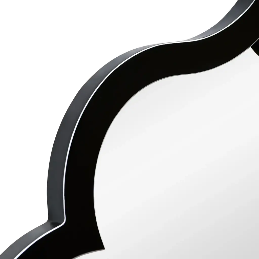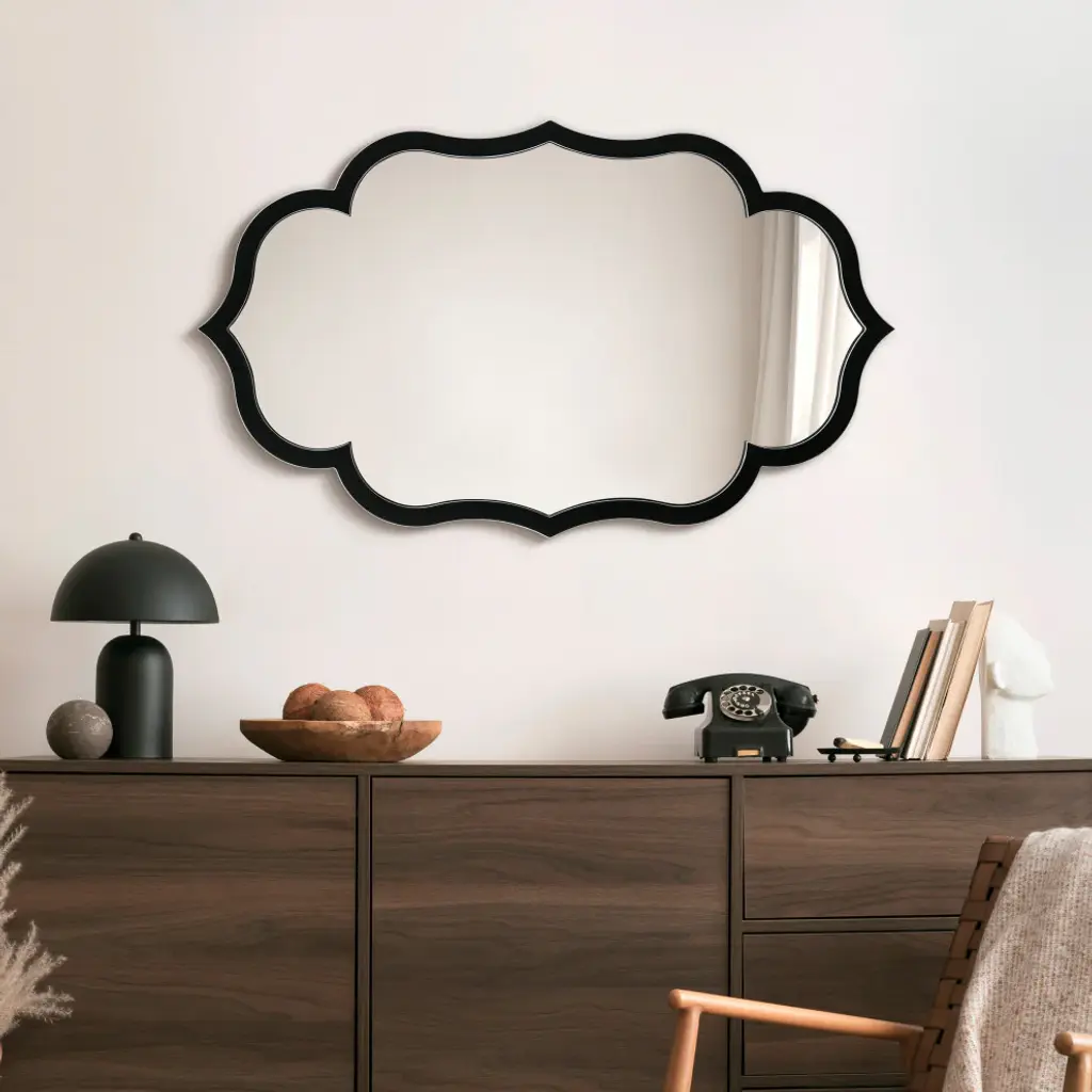 Curved Scalloped Wall Mirror On Black Matte Frame With White Edges