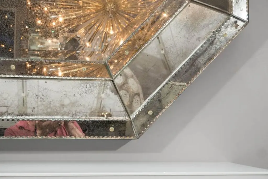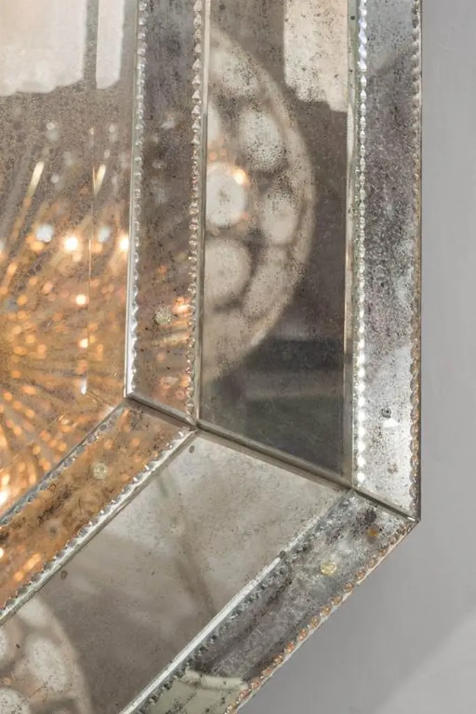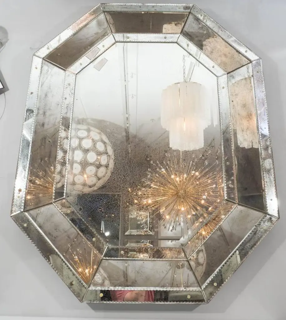 Custom antiqued octagon mirror. Customization is available in different sizes and mirror finishes.