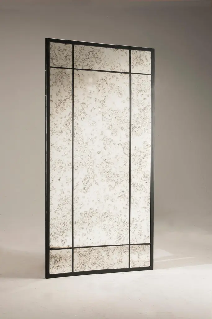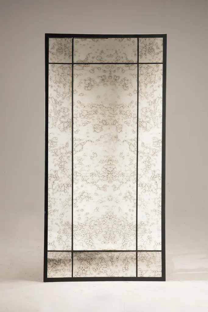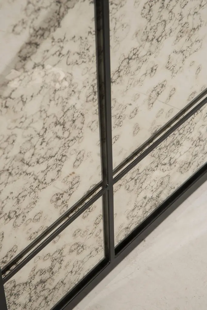 Customizable black iron frame distressed effect glass window look mirrorNot only for Industrial style lovers, Pescetta presents the Customizable Industrial Mirrors collection. With iron frame and many customizable details, they suits both industrial open space lofts and very modern houses, offices or shops which need a bohemian touch. Lead time: 20 business days. Worldwide shipping.PRICE REFERS TO an industrial black iron frame window look mirror, vintage effect glass silver mirror. Many further details are customizable Customize the frame:Define shape and size: rounded, squared, rectangular, hexagonal, octagonal.Finishing: Iron can be black, industrial grey, rusty effect, gold, silver or copper. Customize the mirrorDivide the mirror into panels to have a window look,Choose the kind of mirror : Classic, Beveled, Smoked, Bronze or Aged effect. Add accessories such as lights, hangers or studs.Design your mirror now! Kind of mirrorKind of mirrors a) Classic: normal silver color mirror. b) Smoked: Smoke grey (cold effect) distortion of reflected colors. c) Bronze: Bronze (warm effect) distortion of reflected colors. d) Black and white: Classic silver base and several small spots. Most used one, light distressed effect, clear vision, no distortion of reflected colors. e) Black and white /Bronze: bronze base and several small spots. Warm Bronze dis-tortion of reflected colors. f) Silver: strong distressed look, silver base with large spots as per mirrors from 18th century. Blurred vision in the complex. g) Saturn: medium distressed look, silver base and several large light spots. Reflected colors are darker in complex. h) Antique Venetian: several light spread big spots which gently turn reflected colors into powder pink tone. Low distressed look.