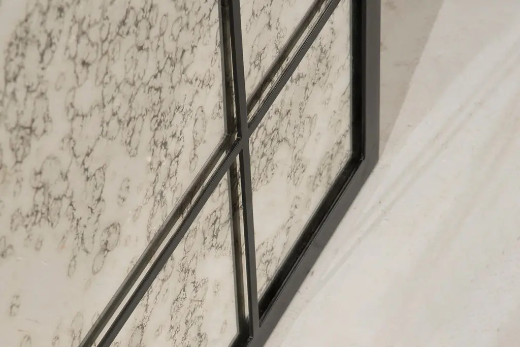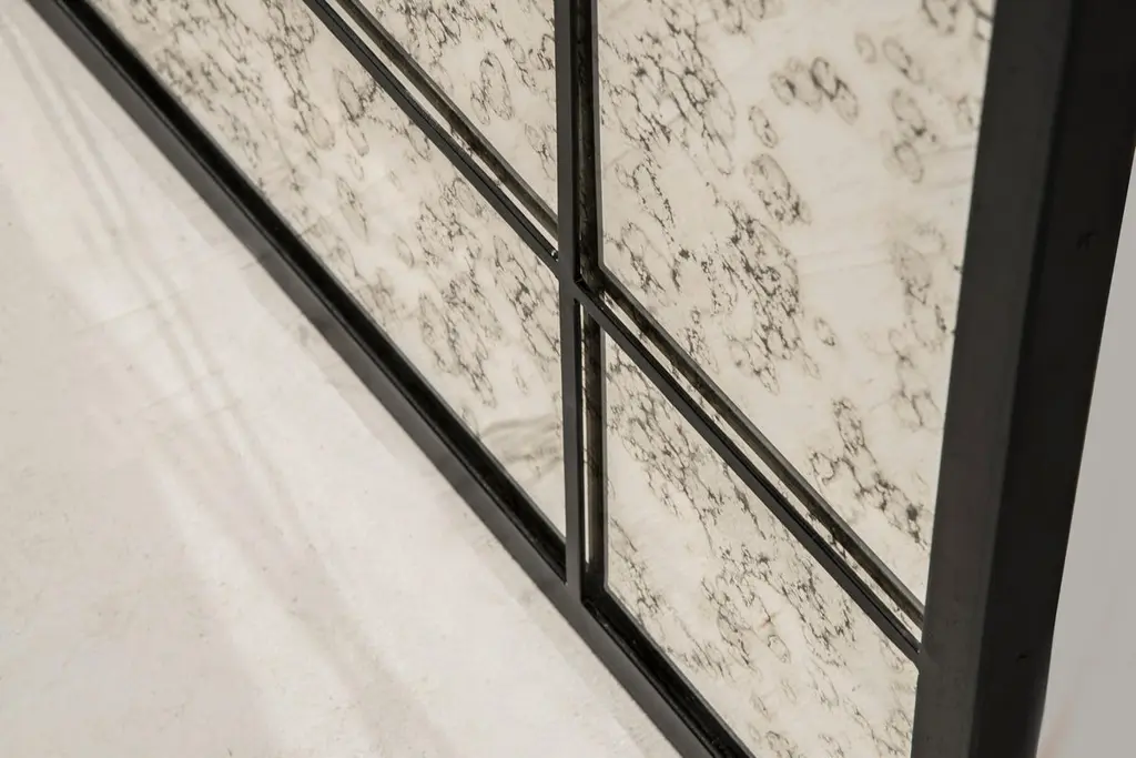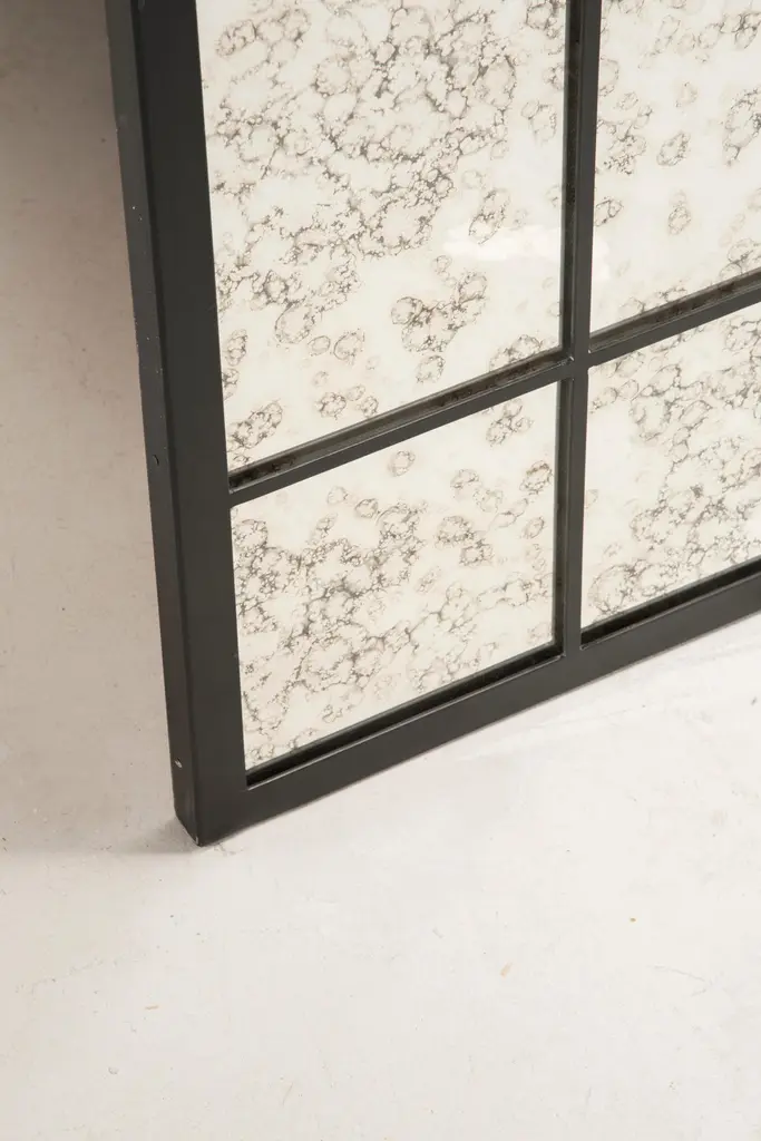 Customizable Black Iron Frame Distressed Effect Glass Window Look Mirror 100x200