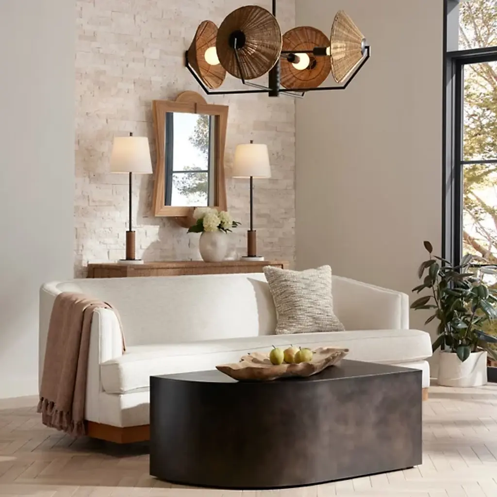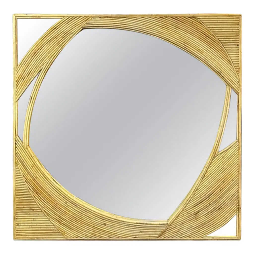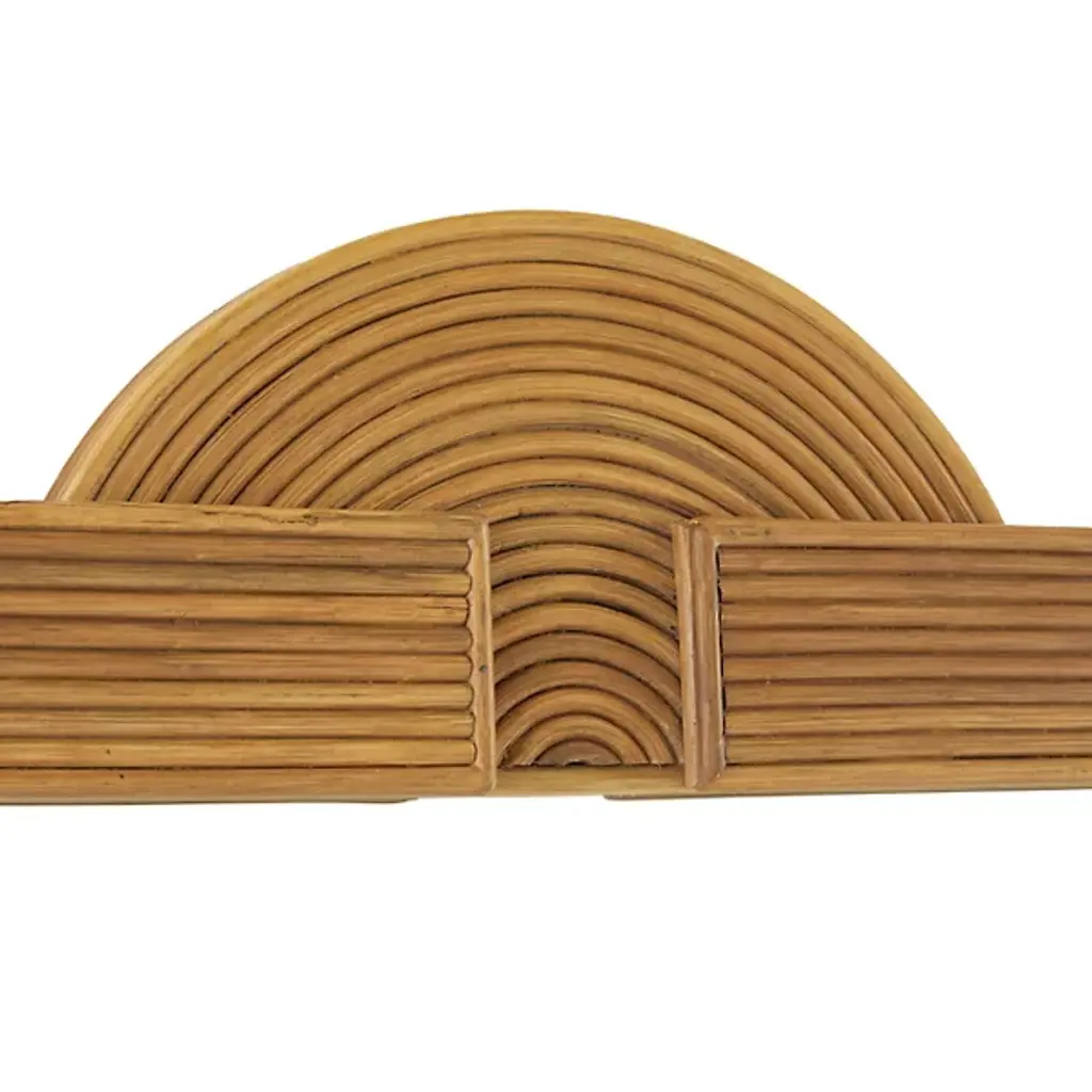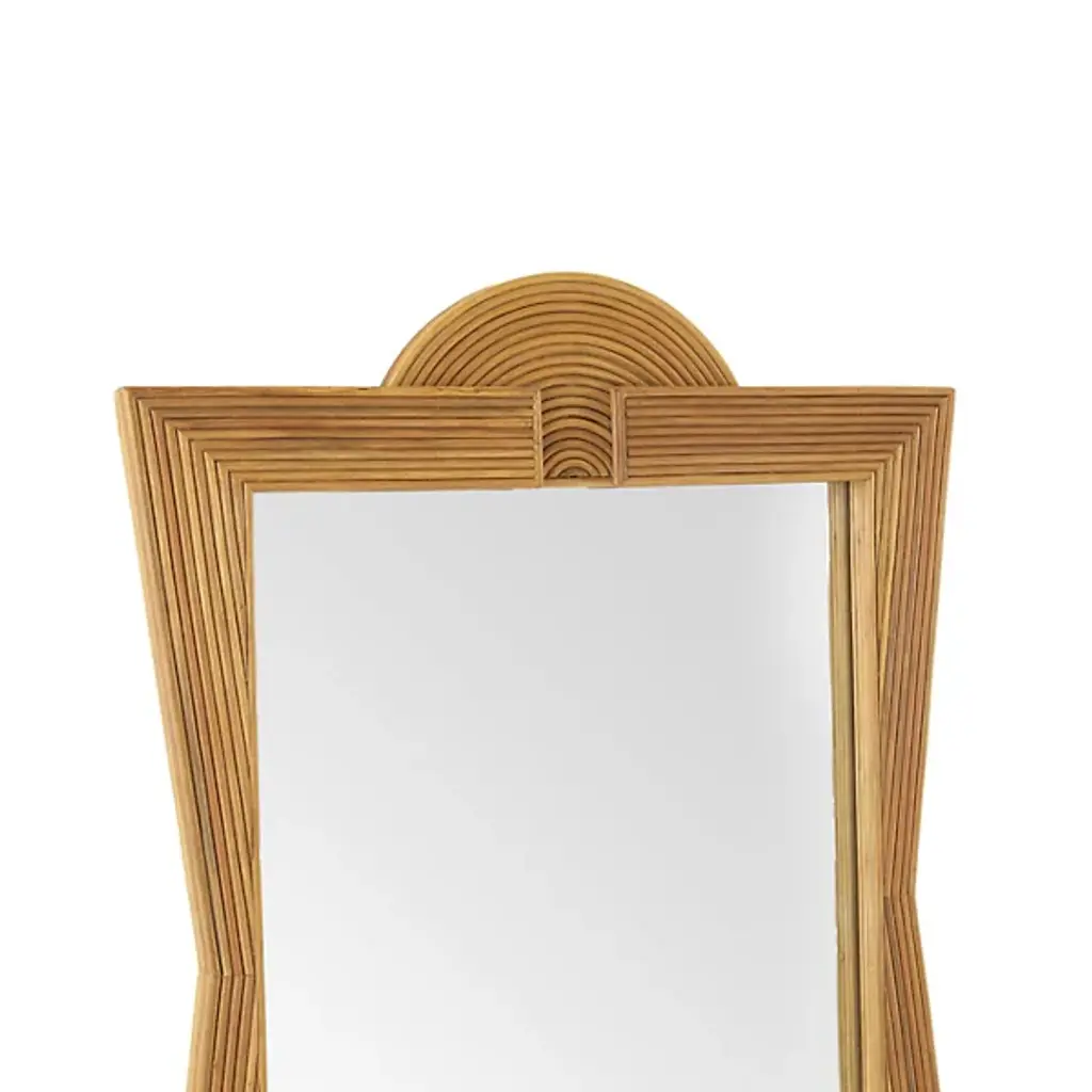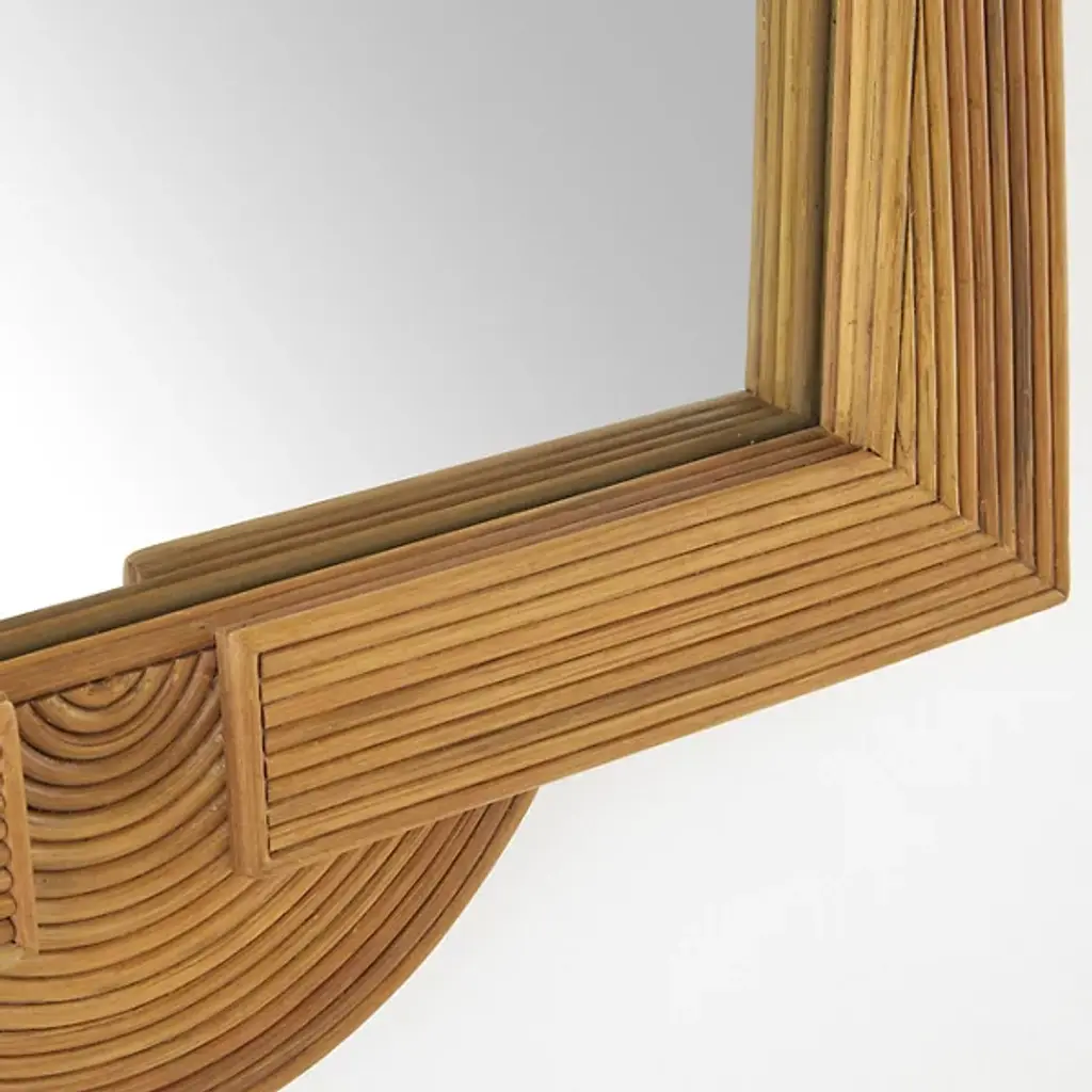The Cypress Mirror from Arteriors is an artisanal modern fixture adorned with lovely rattan. This mirror offers clear reflections, and it is defined by its tapered silhouette and half-circle motifs at the top and bottom inspired by mid-century modern architectural forms. It can hang vertically or horizontally for your convenience, and it is recommended to use a security cleat.