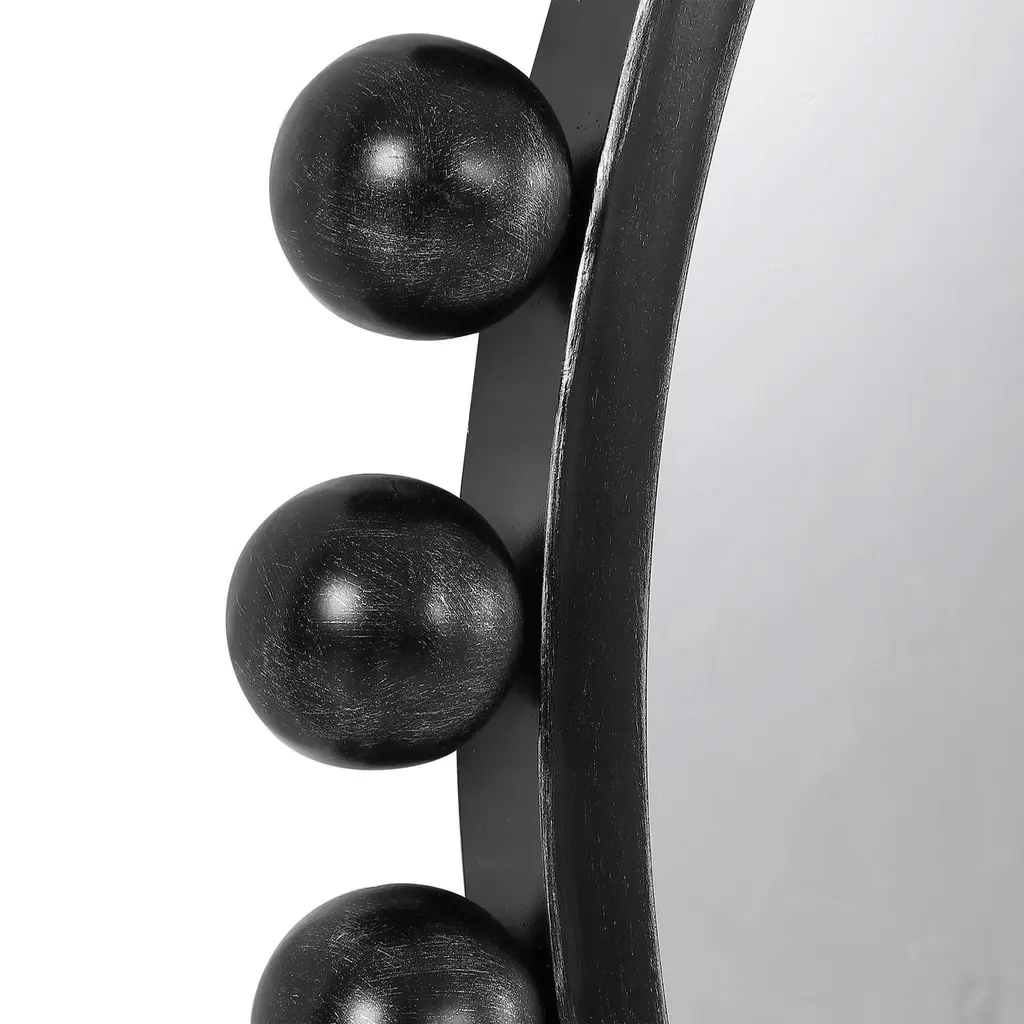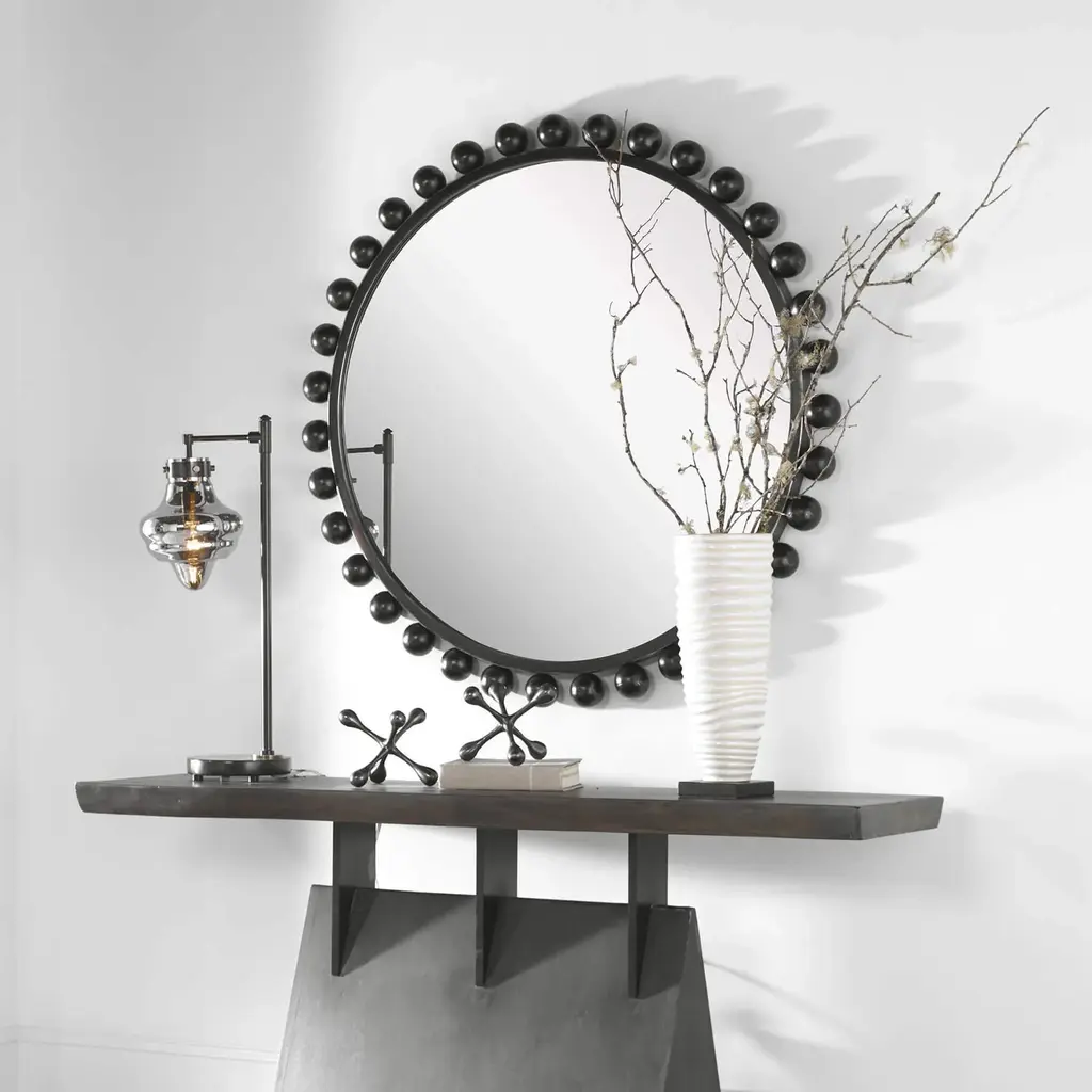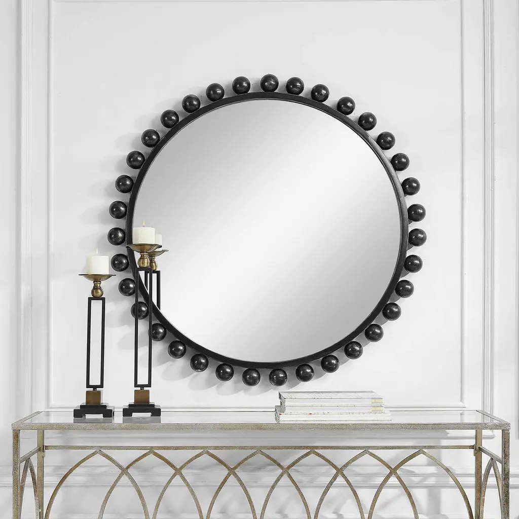 Featuring a bold frame dotted with spheres, the Cyra mirror is sure to make an impact. Available in multiple colors and finishes.