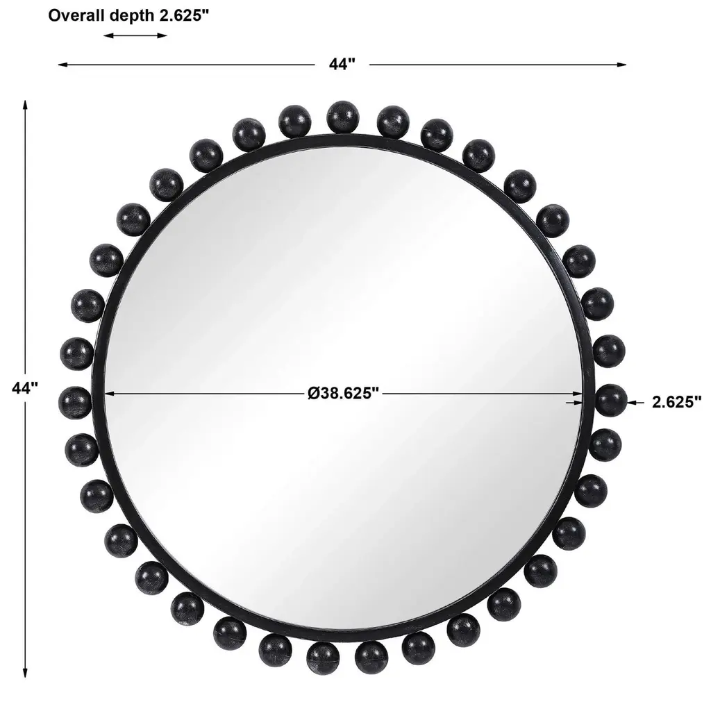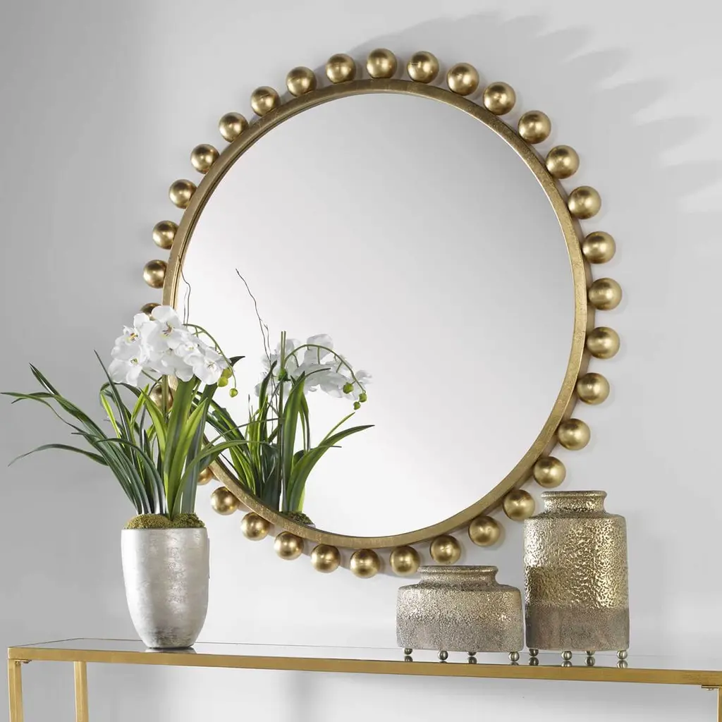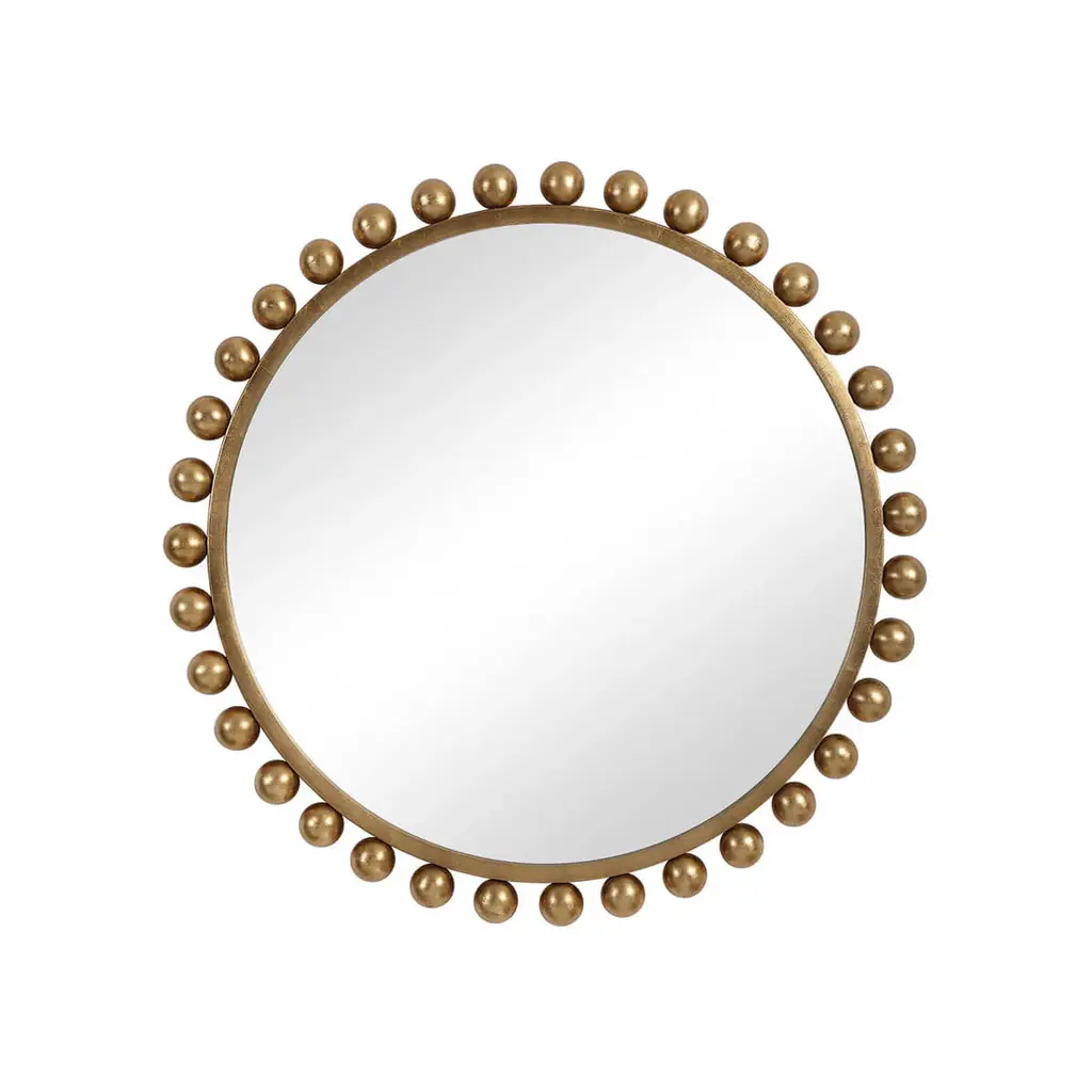Featuring a bold frame dotted with spheres, the Cyra mirror is sure to make an impact. Available in multiple colors and finishes.