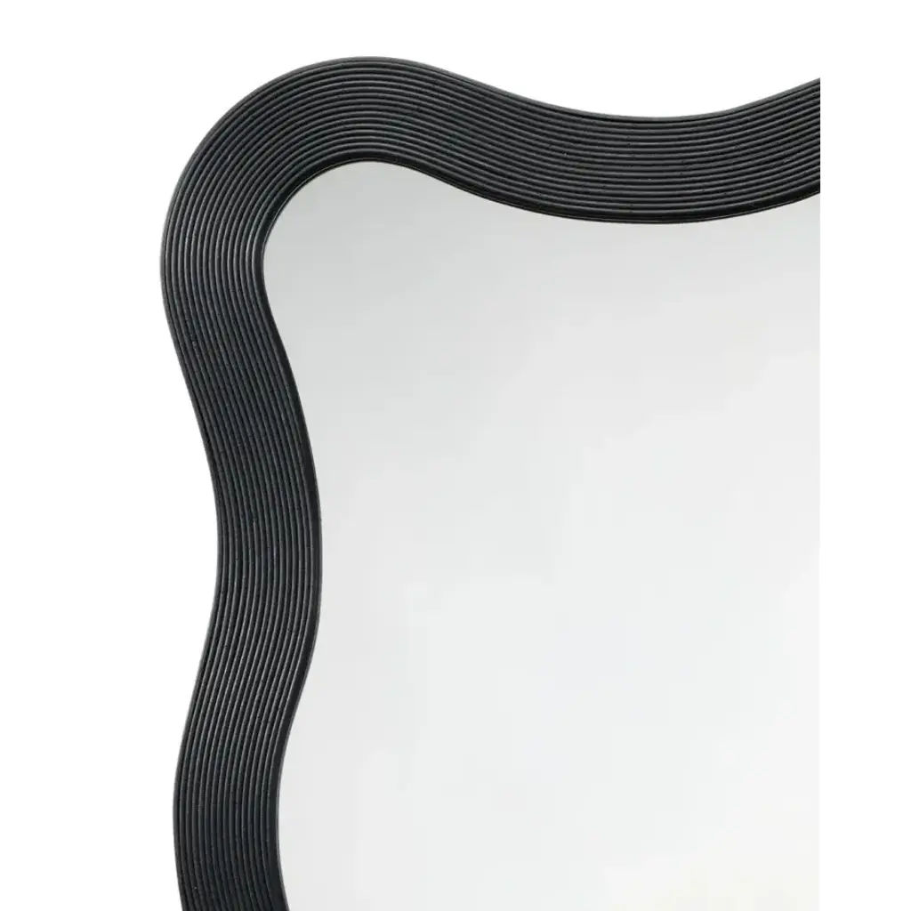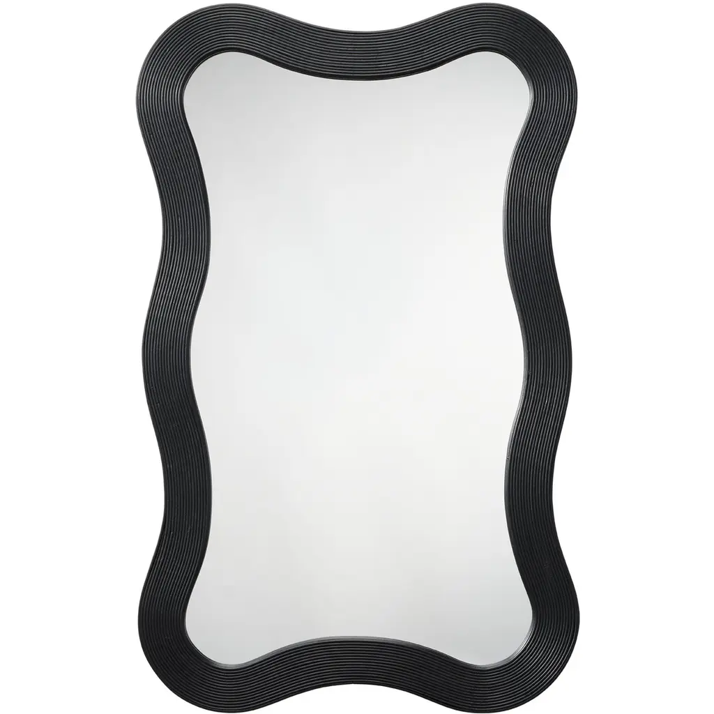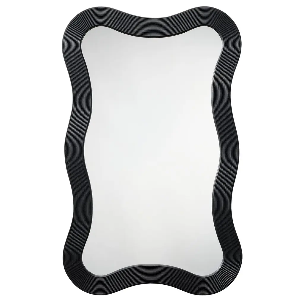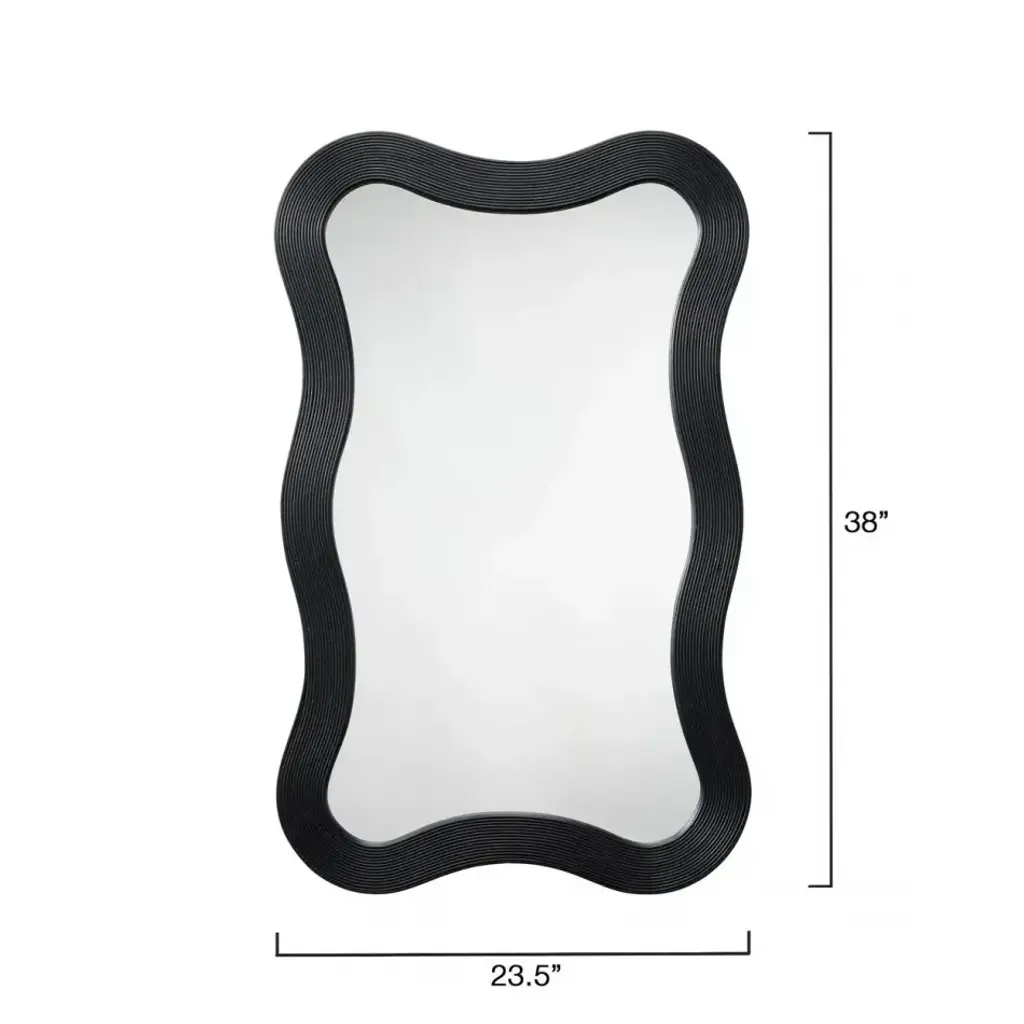 The gently curved lines of this wood mirror are beautifully enhanced by linear textural elements. Artisan-crafted from bamboo, its monochromatic finish adds a touch of drama to any wall display. Place it by the door for a quick fit check on your way out, or in an entryway for a welcoming touch of light.