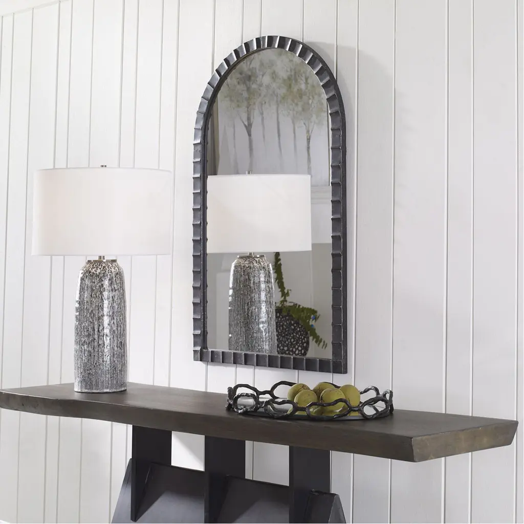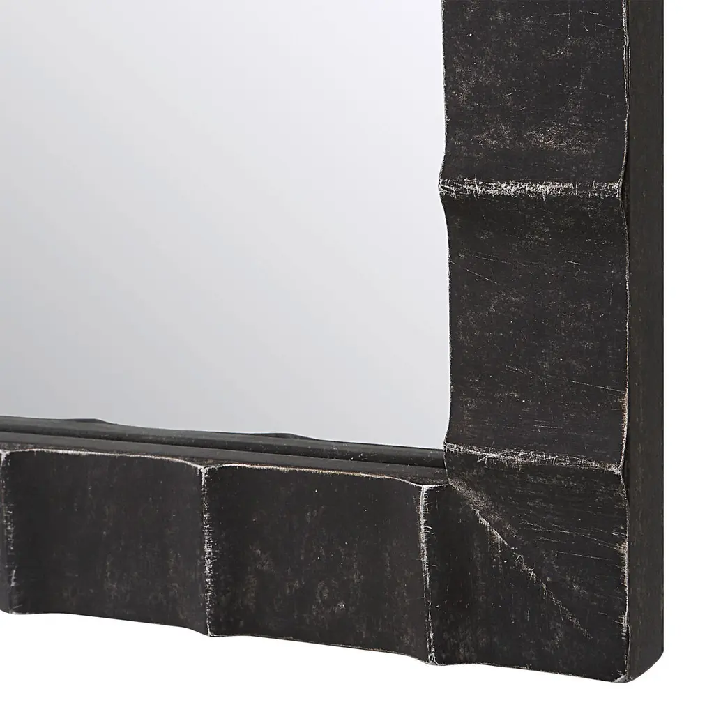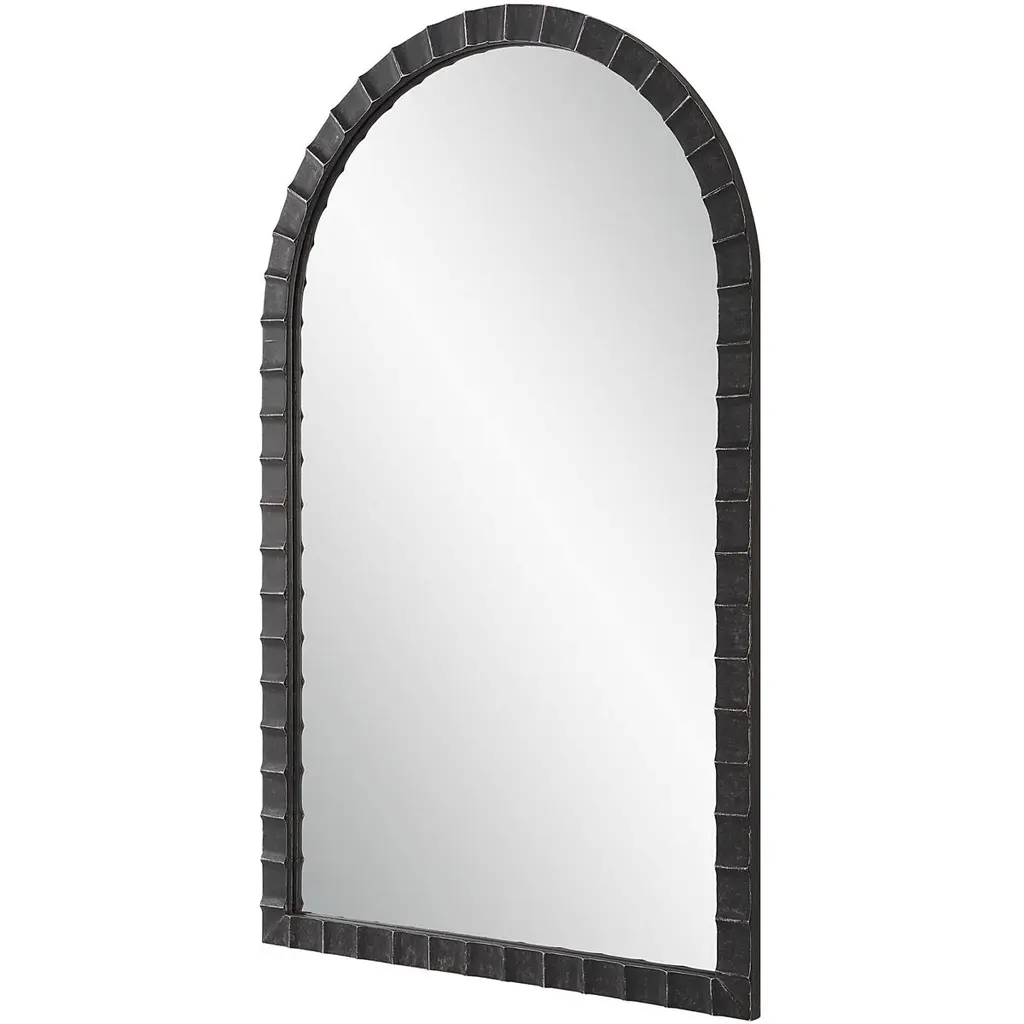 Dandridge 39 X 24 Inch Distressed Matte Black With Silver Undertones Arch Wall Mirror