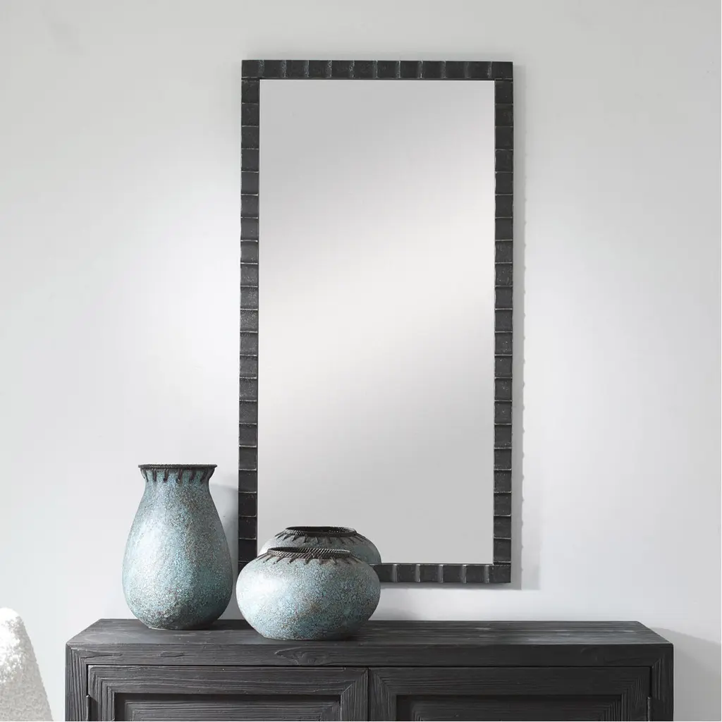 Dandridge 42 X 22 Inch Distressed Matte Black With Silver Undertones Wall Mirror