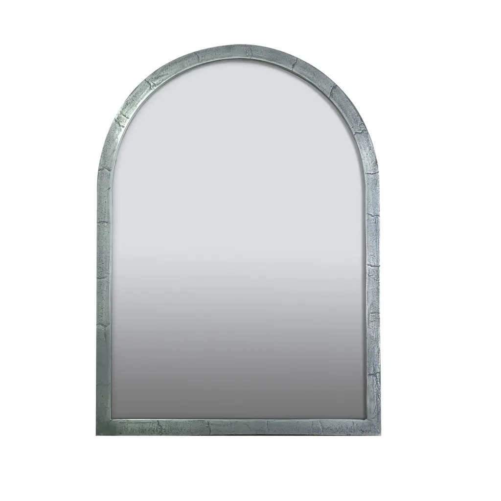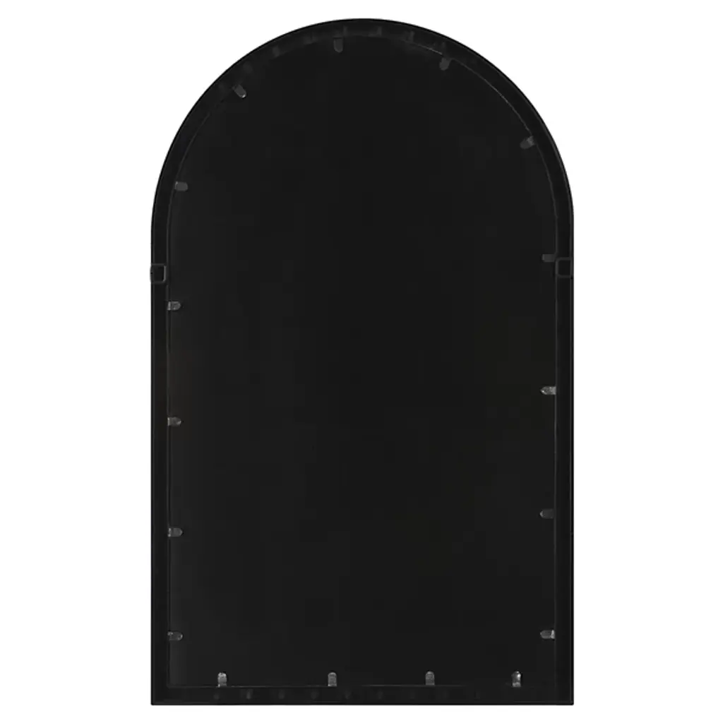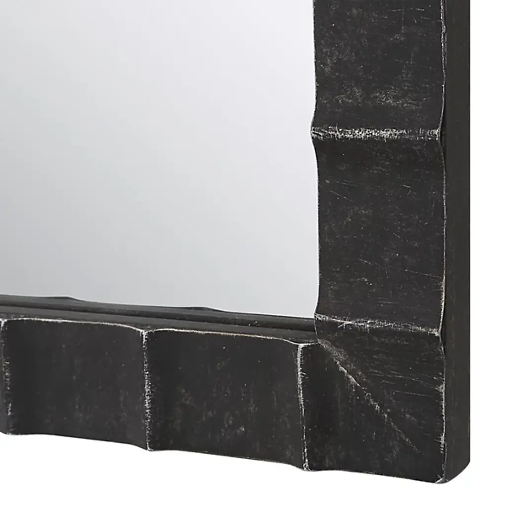 The Dandridge Arch Mirror from Uttermost reflects light with a rustic midcentury style. Forged by hand, a textural iron frame displays noticeable ridges and a contrasting finish surrounding the arch-shaped mirror, ascending from angular corners to a curving top. The construction is distilled to its simplest elements, accented with a touch of industrial expressiveness, creating a memorable vintage appeal with its slim handcrafted frame and sleek mirror design that boldly blends eras.