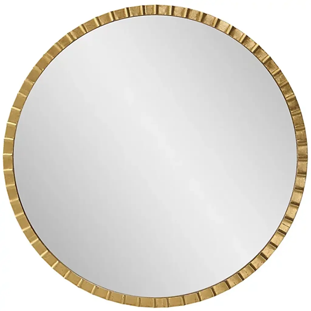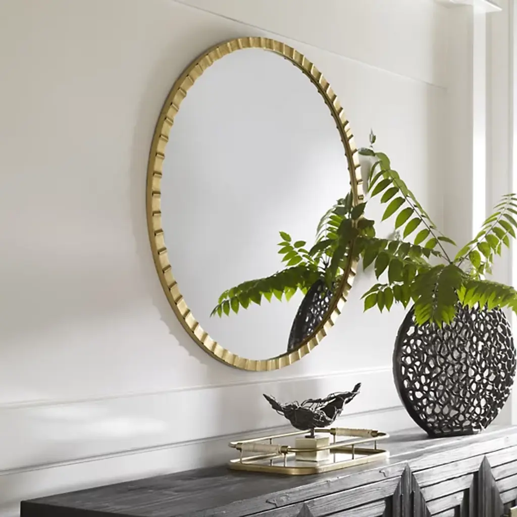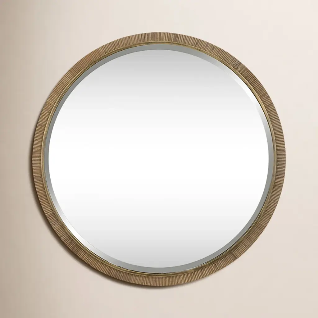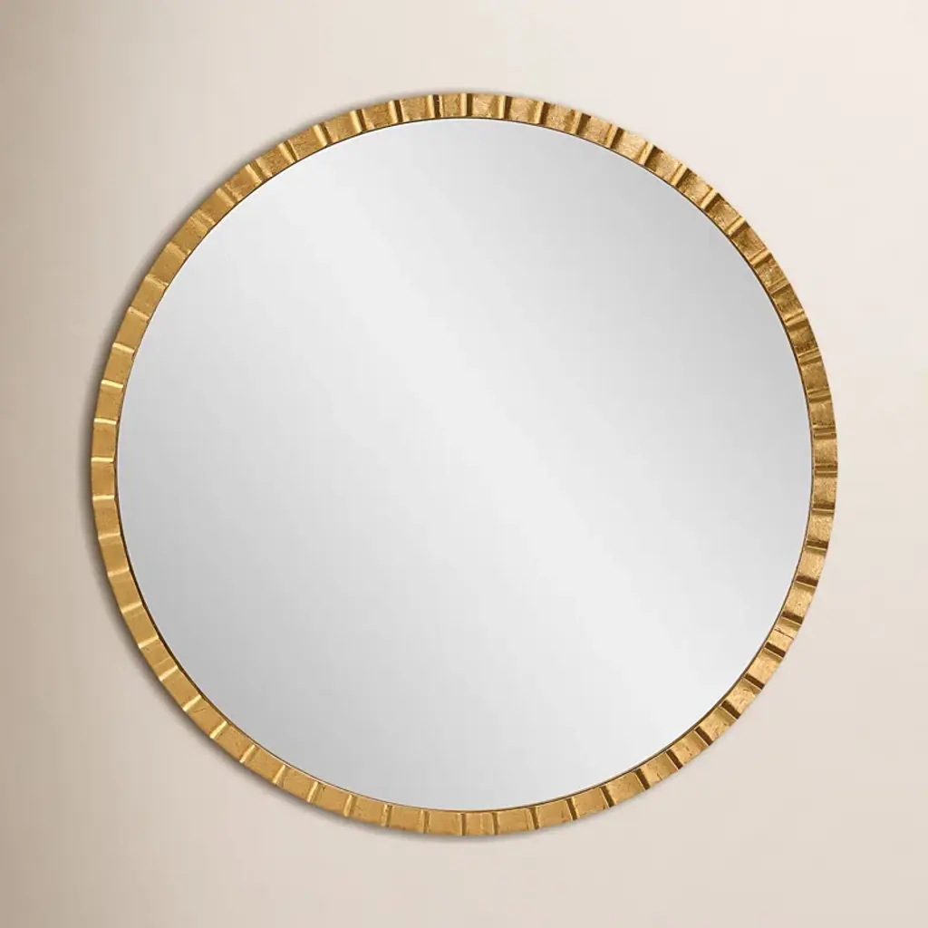 Blending midcentury style with an industrial edge, the Dandridge Round Mirror from Uttermost features a textural hand-forged iron frame. Noticeably raised ridges add depth to the contrasting finish, surrounding a circular mirror with rustic allure. This fabulously framed piece brings an interplay of vintage warmth and present-day appeal, reflecting light uniquely and enhancing walls with its slim yet bold handcrafted frame.