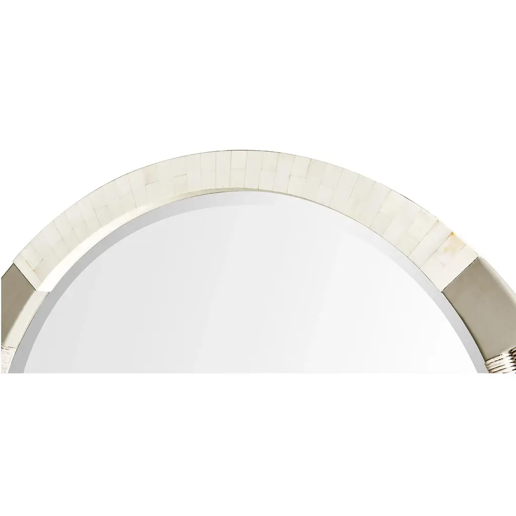 This striking round mirror features subtle metallic accents and a perfectly balanced design, making it an elegant focal point for contemporary spaces. Just over three feet wide, this handcrafted mirror exudes sophistication with its organic materials and modern finishes. Whether placed in an entryway, living room, or bedroom, it adds a distinctive, upscale charm to any space. Dimensions: 36.375" W x 2" D x 36.25" H