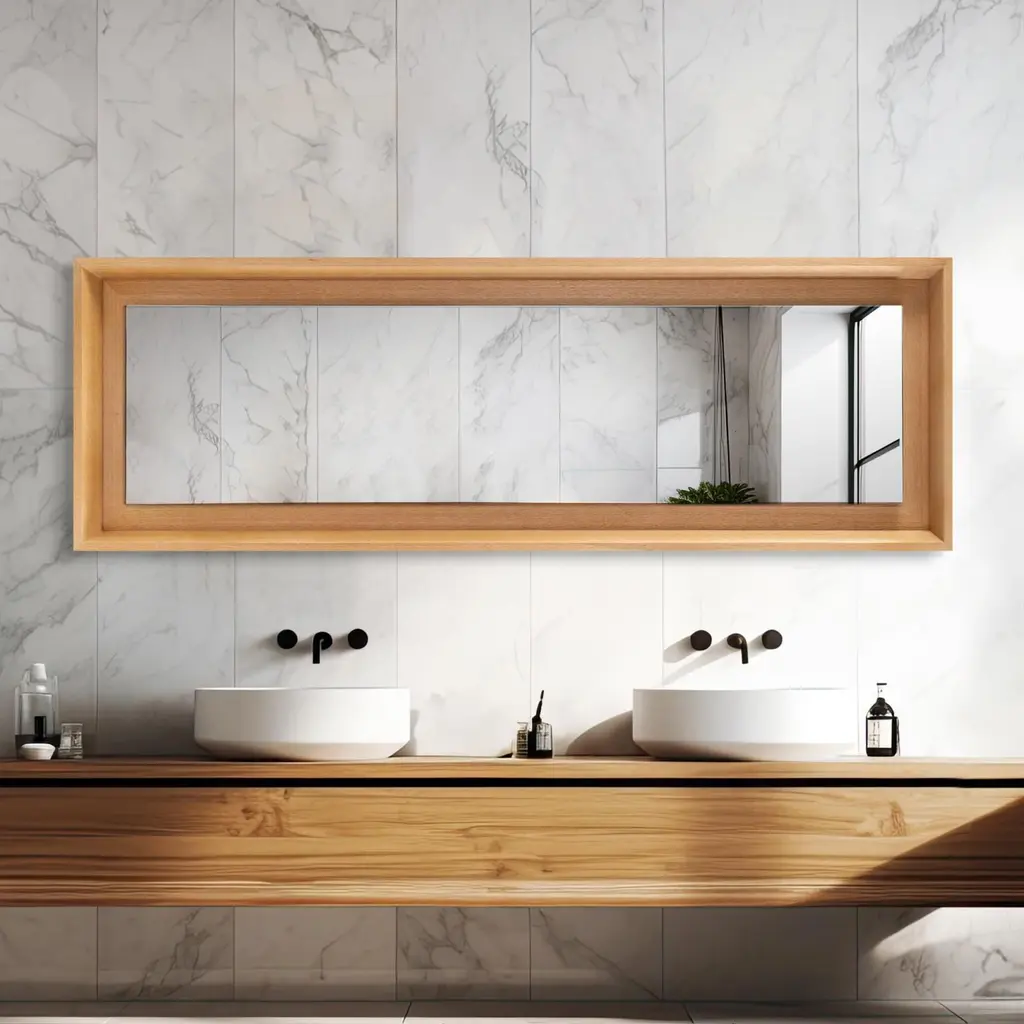 This dressing mirror features a wood concave frames that creates a touch of natural charm and warmth. What sets this mirror apart is the clever construction giving the mirror a floating appearance that adds an air of sophistication and intrigue. This mirror invites you to explore the art of reflection and design.