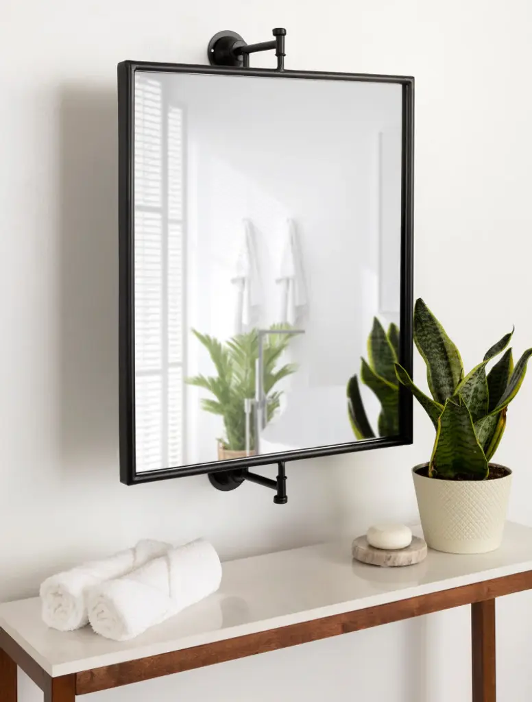 Your decorative farmhouse style is about to get a robust upgrade with the Darbridge mirror. Putting a modern twist on farmhouse style, the Darbridge features a clean rectangular shape with a sleek black finish on a rustic-style iron frame. This rectangular mirror is mounted on a pivoting hanging rod, allowing the mirror to adjust to your preferred angle. This pivoting design is not only great for bathroom vanity mirrors but also allows you to capture a natural light source and spread vibrancy and dimension throughout your space. The overall dimensions of the Darbridge pivot mirror are 20 inches wide by 6.25 inches deep by 30 inches tall, making it a commanding and visually striking focal point in a variety of decor scenes. It looks fabulous in a modern farmhouse-inspired bathroom, bedroom, entryway, kitchen, or living room with a design that fits into multiple decor themes. To hang this fabulous accent mirror, use the pre-drilled holes in the round top and bottom hanging bracket, securing your mirror for multiple years of display.• CONVENIENT DESIGN: The Darbridge mirror has a rectangular, floating mirror that pivots on a rod mount, allowing it to display at various angles in your home• RUSTIC MATERIALS: The frame and hangers of the Darbridge is crafted with a robust iron material, giving it a farmhouse-inspired look with a modern twist• LARGE SIZE: This mirror''s overall dimensions are 20 inches wide by 6.25 inches deep by 30 inches tall, making it a visually striking accent piece for any wall of your home• VERSATILE: The pivoting design of the Darbridge is not only excellent as a bathroom mirror, but as a way to capture and maximize natural light in dim living spaces• EASY TO HANG: There are pre-drilled holes in each round bracket, allowing a secure and sturdy installation directly on your wall