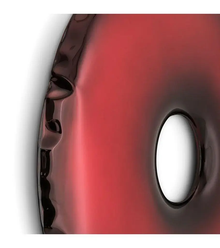 Dark Matter Rondo 95 wall mirror by ZietaDimensions: diameter 95 x deep 6 cm Material: stainless steel.Finish: dark matter.Available finishes: stainless steel, white matt, sapphire/emerald, sapphire, emerald, deep space blue, dark matter, or red Rubin. Also available in sizes ø75, ø120, and ø150cm. The Rondo Mirror is made of stainless steel polished to a high gloss. Its polished surface is perfectly reflecting the light and other objects placed in the same room or hall. Largescale convexities that appear on the surface of the mirror are literally able to alter the space. It is like making an individualized interior design of the moment when by rolling the mirror from one place to another everybody can create or rediscover a well-known environment to a brand new and grasping concept. Depending on Rondo´s arrangement, either by hanging it or leaning at the wall, the mirror can change the perception of the surroundings.Deep, dark, blue, and intriguing. The new unique finish of Rondo Deep Space Blue takes the spectators for an unexpected journey into an undiscovered world of reflections. The mirror resembles cosmic wonders and at the same time can be fitted with the most demanding and elegant interiors. Color gives meaning and brings associations. The Gradient collection presents the whole spectrum of shades of cool sea depth. Carefully selected colors blend well with the hard steel.About Zieta: Zietas main goal is to deliver uniqueness and customization in design and construction while keeping the production, transport, and warehousing innovatively efficient.This is how they imagine the future world: Light, durable structures of customized applications produced on demand out of one-of-a-kind parts, yet efficiently.They use a computer-controlled production process. Customized pattern, customized form, customized function, one-of-a-kind product, and outstanding precision are what they deliver.You will find all of this philosophy reflected in the products. They research, they discover new possibilities, they play with forms and they deliver a beautiful, innovative, surprising outcome to people who love the design and who care about design development.They believe their work is a valuable contribution to the world of design not only by the unique beauty of the forms but most of all by opening ultra-innovative opportunities of forming and new paths for the world of the future.