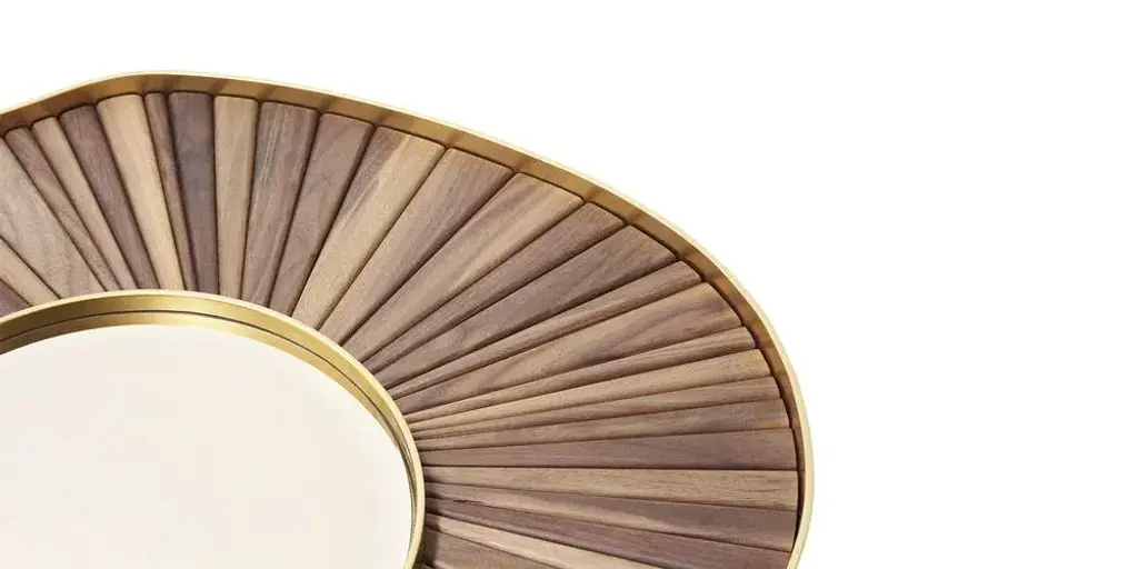 The Darvaza crater is well represented in the mirror's frame. The comtemporary piece is totally handmade, since the wood work, piece by piece application, to the metal frame. Designers use Darvaza collection in modern interiors. Labeled by Maker