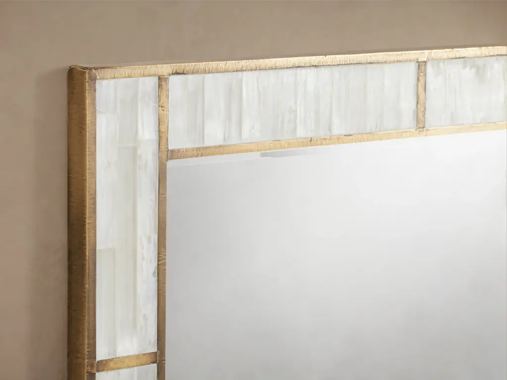 Dimension and subtle shimmer from stunning selenite crystals with brass detailing frame our Davia Mirror, the perfect neutral addition to your home.