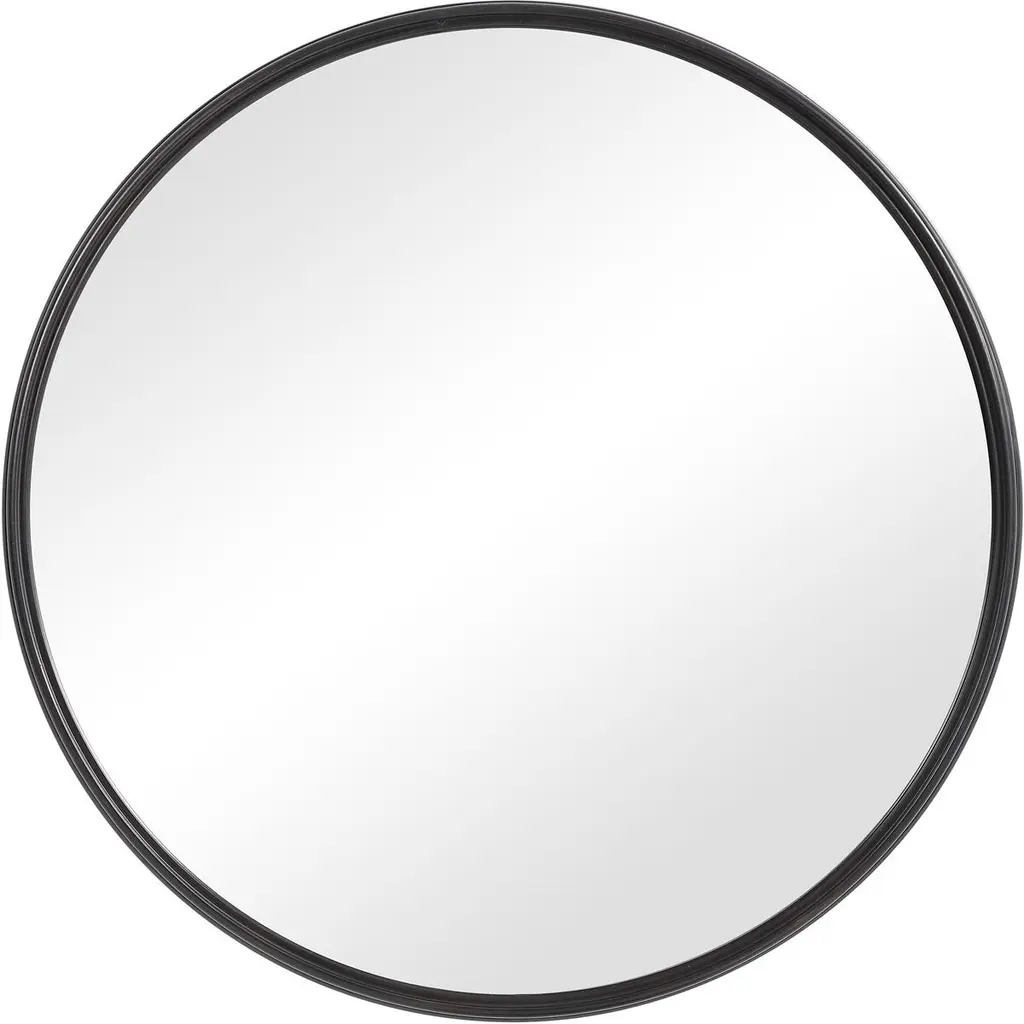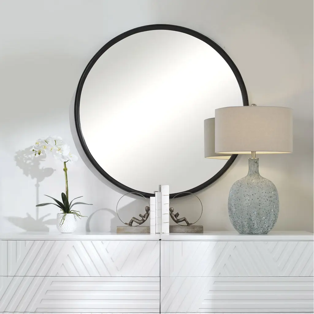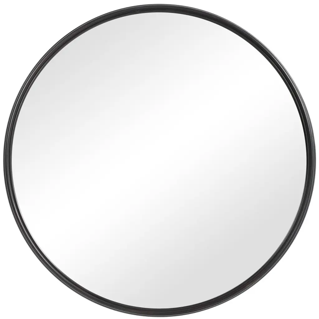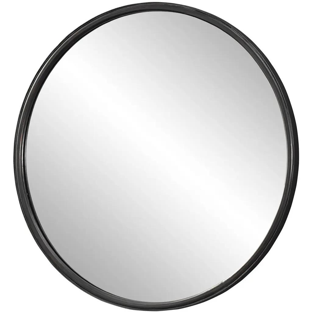 Smooth Rounded Frame Encased In A Thick Iron Band Finished In An Aged Black With Subtle Gray Highlights.