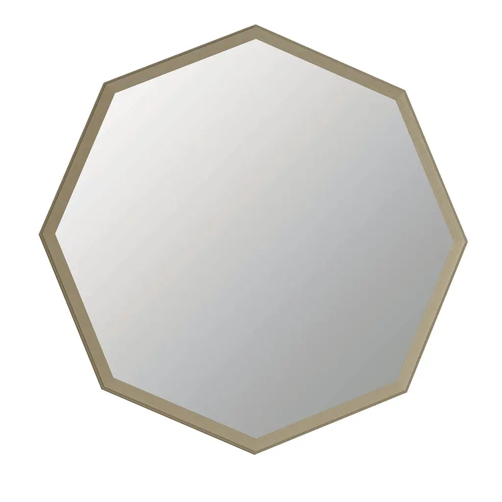 This retro-inspired burnished brass mirror will dress up any wall with a minimalist yet modern feel. Set in a slim and elegant octagonal frame with a subtle and warm brushed finish, this stylish mirror can be placed over a console in an entryway or on a dresser in a bedroom for a look that adds instant glamour to any decor.
