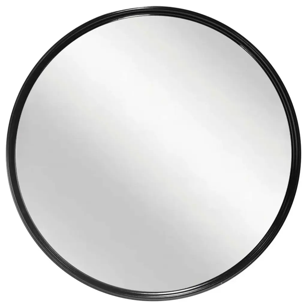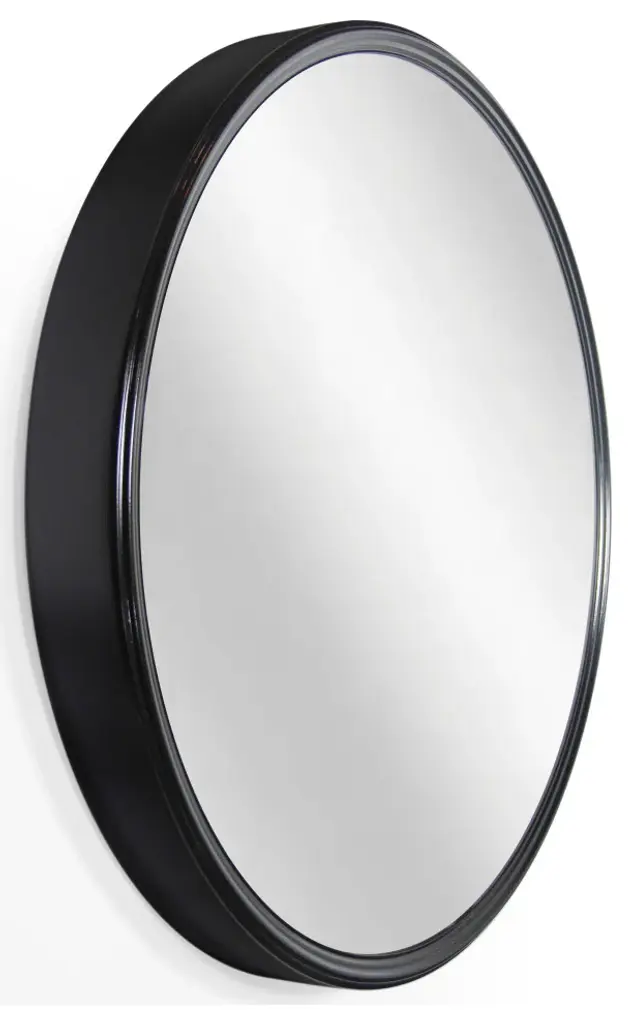 Deep Frame Metal Wall Mirror, 24" Diameter, Black