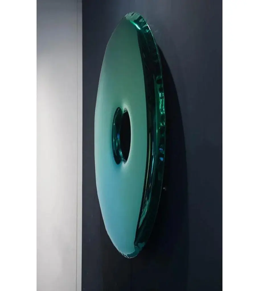 Deep Space Blue Rondo 95 wall mirror by ZietaDimensions: Diameter 95 x D 6 cm Material: Stainless steel.Finish: Deep space blue.Available finishes: Stainless Steel, White Matt, Sapphire/Emerald, Sapphire, Emerald, Deep space blue, Dark matter, or red Rubin. Also available in sizes ø75, ø120, and ø150cm. Please contact us for more information. The Rondo Mirror is made of stainless steel polished to a high gloss. Its polished surface is perfectly reflecting the light and other objects placed in the same room or hall. Largescale convexities that appear on the surface of the mirror are literally able to alter the space. It is like making an individualized interior design of the moment when by rolling the mirror from one place to another everybody can create or rediscover a well-known environment to a brand new and grasping concept. Depending on Rondo´s arrangement, either by hanging it or leaning at the wall, the mirror can change the perception of the surroundings.Deep, dark, blue, and intriguing. The new unique finish of Rondo Deep Space Blue takes the spectators for an unexpected journey into an undiscovered world of reflections. The mirror resembles cosmic wonders and at the same time can be fitted with the most demanding and elegant interiors. Color gives meaning and brings associations. The Gradient collection presents the whole spectrum of shades of cool sea depth. Carefully selected colors blend well with the hard steel.About Zieta: Zietas main goal is to deliver uniqueness and customization in design and construction while keeping the production, transport, and warehousing innovatively efficient.This is how they imagine the future world: Light, durable structures of customized applications produced on demand out of one-of-a-kind parts, yet efficiently.They use a computer-controlled production process. Customized pattern, customized form, customized function, one-of-a-kind product, and outstanding precision are what they deliver.You will find all of this philosophy reflected in the products. They research, they discover new possibilities, they play with forms and they deliver a beautiful, innovative, surprising outcome to people who love the design and who care about design development.They believe their work is a valuable contribution to the world of design not only by the unique beauty of the forms but most of all by opening ultra-innovative opportunities of forming and new paths for the world of the future.