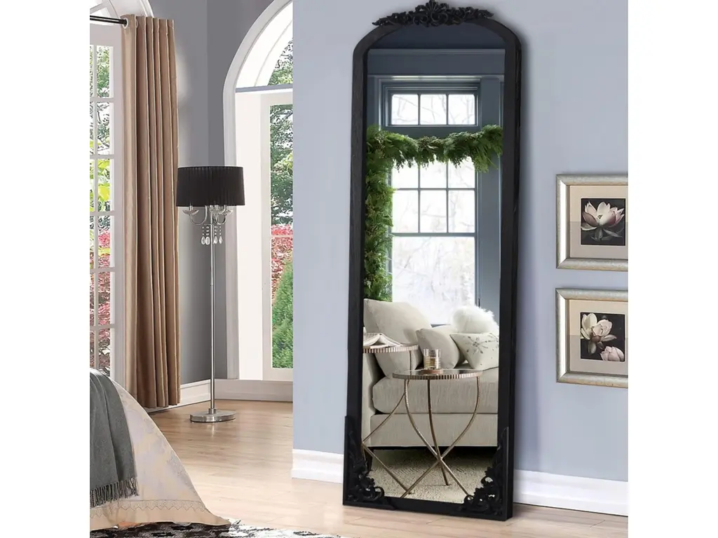This full-length mirror abandons complex textures and decorations, combining classic style and modern spirit to give bright and generous colors. Add some classic French style to your home with this beautiful full-length mirror and ornately carved frame in a standout finish enhancing your decor with a look of luxury and elegance.