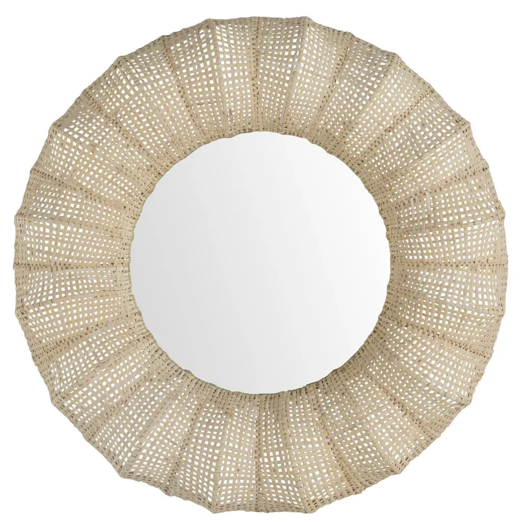 The Delilah Mirror is a stunning fusion of natural materials and intricate craftsmanship, designed to bring texture and dimension to any space. The frame is crafted from sun-bleached rattan, hand-woven in a loose weave pattern that exudes artisanal elegance. This unique design lays over a structured base, creating a striking 3D silhouette that adds depth and character to the mirror. Perfect for entryways, living rooms, or bedrooms, the Delilah Mirror’s natural tones and organic texture make it a versatile addition to a wide range of interior styles, from bohemian to coastal or modern rustic. Its circular shape not only serves as a functional mirror but also acts as a statement decor piece, reflecting light and enhancing the ambiance of your room.