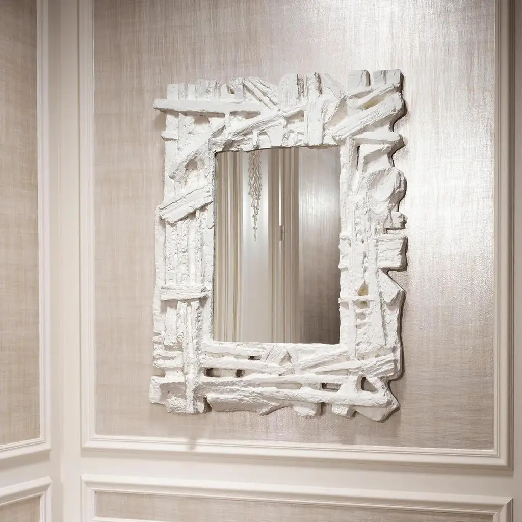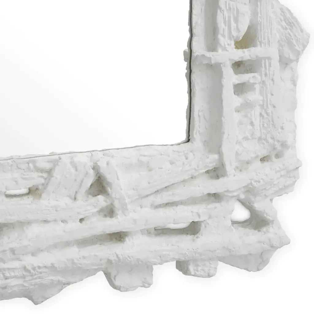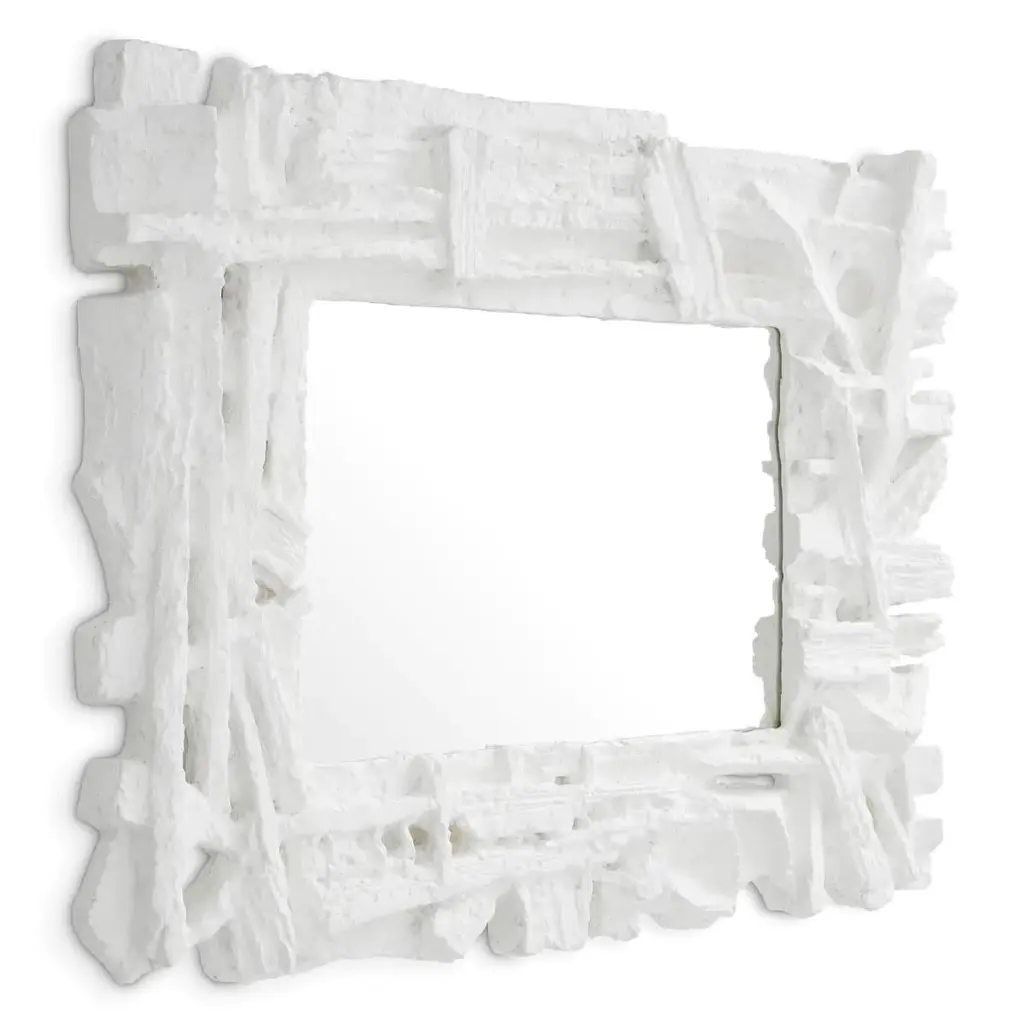 Elegant mirror, matt white, fibreglass, brutalist design.This white mirror features a bold brutalist design for timeless opulence.This elegant mirror is a true work of art. Made from fibreglass, this striking mirror features a bold brutalist design for a modern and timeless style. Its attractive wall decoration features a textured relief pattern that will make a statement in your interior. Place the mirror in your bedroom, hallway or living room: its bold design fits perfectly into any luxurious living space.L. 121 W. 96 D. 10 cm