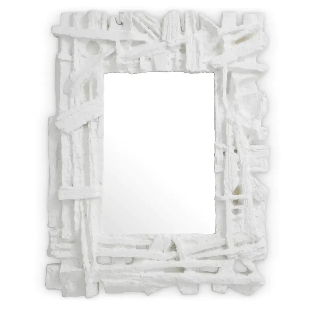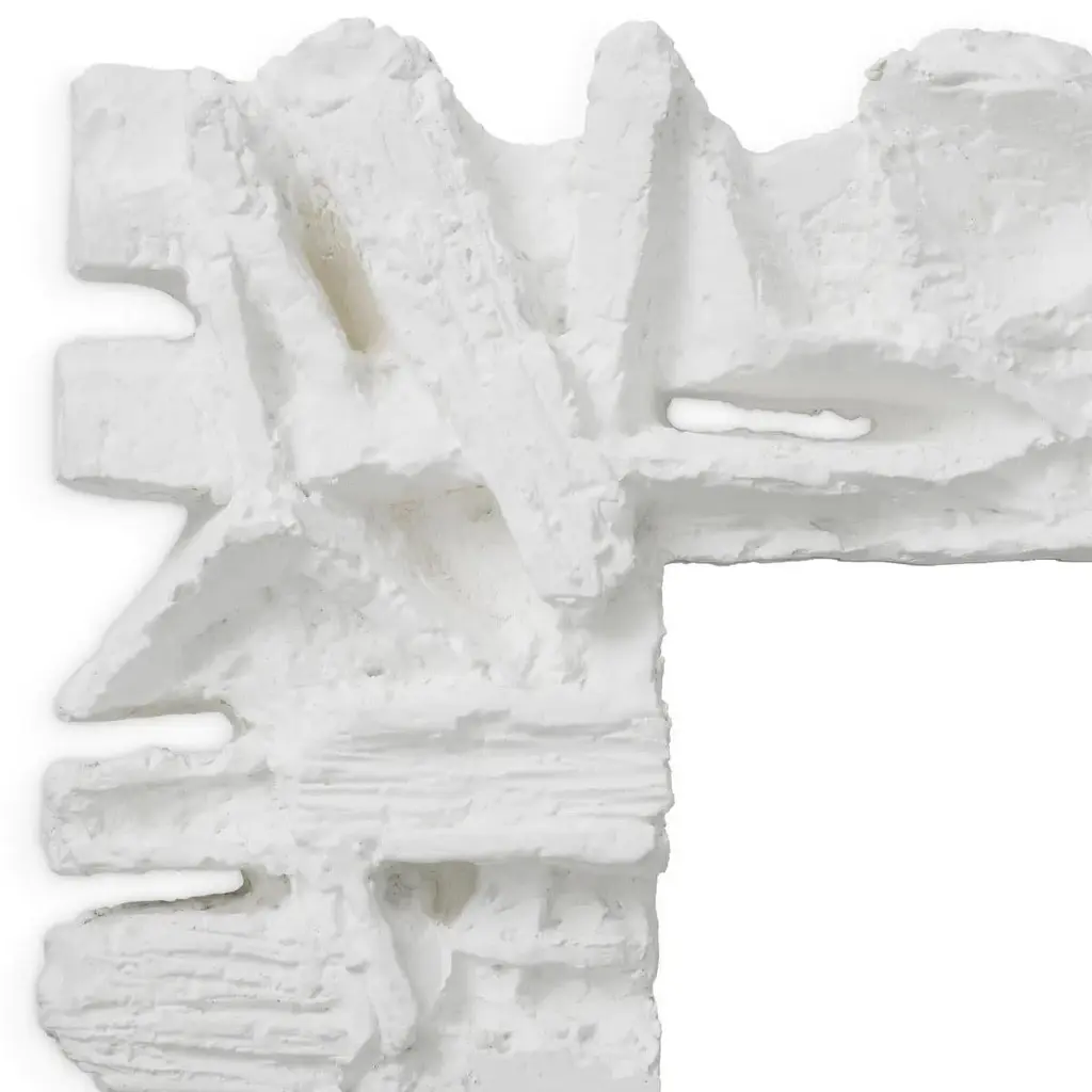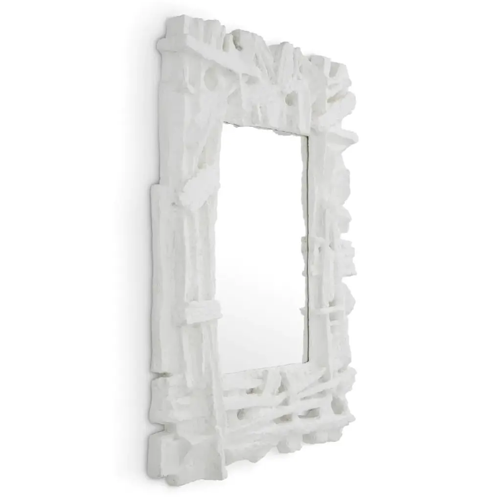 Elegant mirror, matt white, fibreglass, brutalist design.This white mirror features a bold brutalist design for timeless opulence.This elegant mirror is a true work of art. Made from fibreglass, this striking mirror features a bold brutalist design for a modern and timeless style. Its attractive wall decoration features a textured relief pattern that will make a statement in your interior. Place the mirror in your bedroom, hallway or living room: its bold design fits perfectly into any luxurious living space.L. 121 W. 96 D. 10 cm