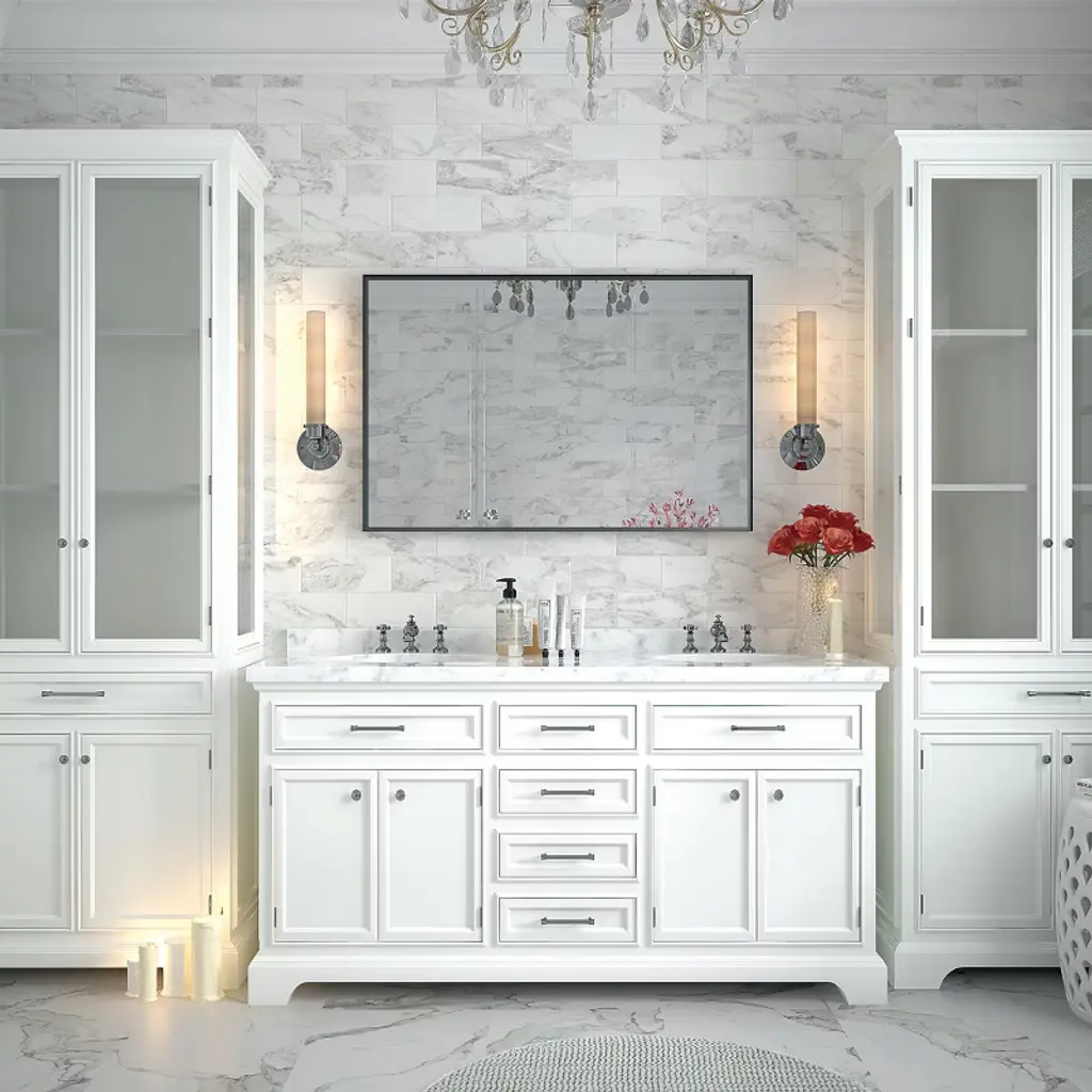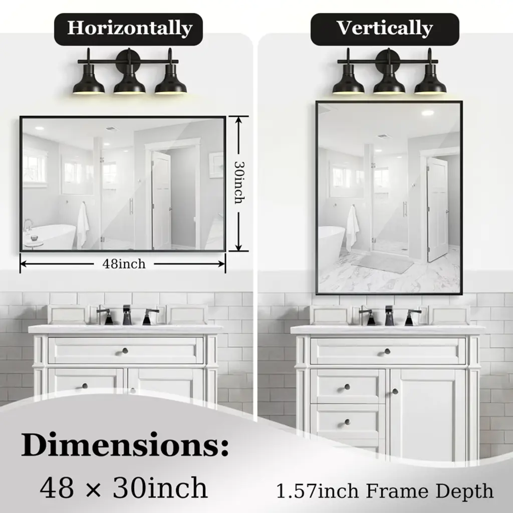 New design of beveled edge, more beautiful, automatic drainage, not hiding water stains. With a ruler, the mirror is easy to install. the stand is strong enough to support the weight of the mirror. Bathroom mirrors can be hung vertically or horizontally. The bathroom vanity mirror uses a high-quality aluminum alloy frame, which is rust resistant and does not deform. Wall-mounted bathroom mirror adopts HD float glass design to ensure 1:1 reproduction of the real image, providing clear reflection without distortion. Innovative design allows the glass to float in the middle of the 1.57inch metal frame, giving the mirror a more three-dimensional feel. we hope this new design of Rectangle mirror will be beyond classic and add a sense of luxury to your room.