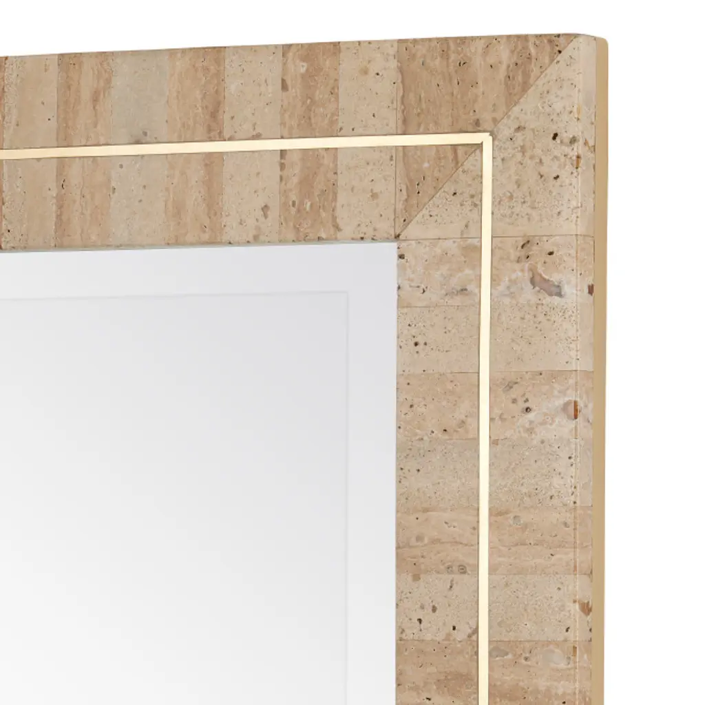 Dezi Rectangular Travertine Wall Mirror, Natural/brass