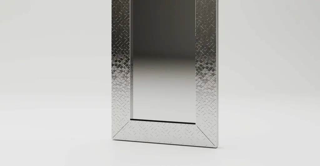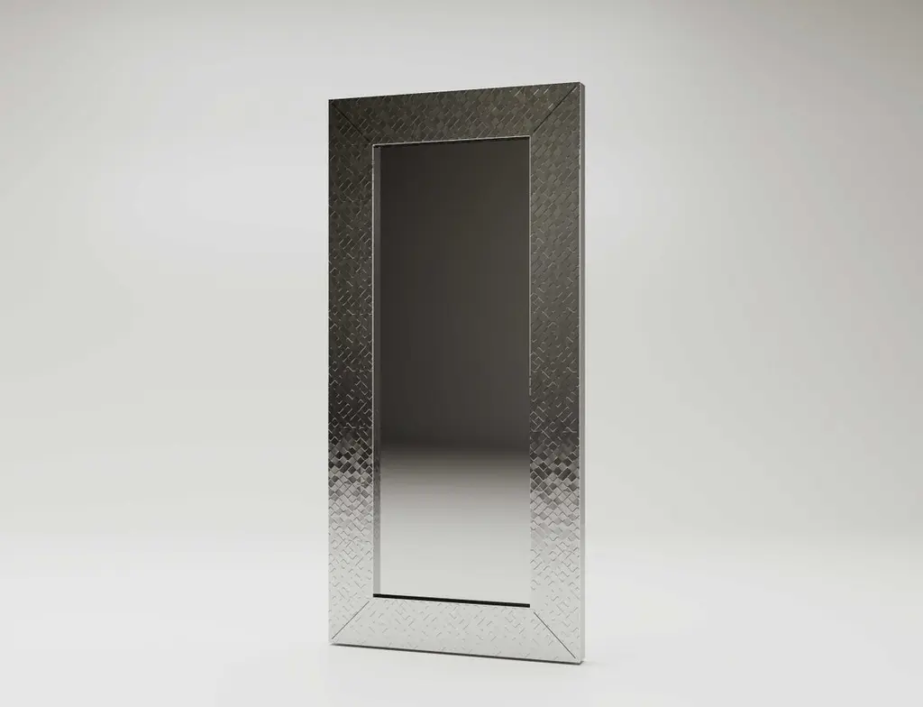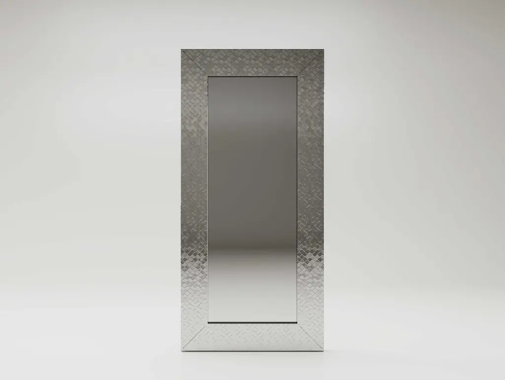 Diamante Mirror by Andrea BoniniLimited Edition Dimensions: D 6 x W 120 x H 240 cm.Materials: Galvanized steel and mirror.Galvanized steel frame with diamante effect in silver. Made in Italy. Limited series, numbered and signed pieces. Custom size or finish on request. Also available in champagne gold and gold finishes. Please contact us.The aim of the Edition Collection is to launch a collection of sculptural furnitureelements produced in a limited series which can be made exclusively by expert and specialized craftsmen.Each piece is intrinsically connected and portrays elegance through geometry and proportions. Meticulous detail of symmetry, bold and deep lines, virtuous and ample curves, cuts and grafts can be found in every single piece.Each product encloses the complexity of its production process in a pure and virtuous form.They are limited editions, each piece signed and numbered, appreciated as art or as design. They are the result of past experiences yet the keeper of future projects. The purpose of andreabonini edizioni? To tell a story through the use of materials between tangent reality and the world of dreams.Andrea Bonini seizes every detail that strikes his attention with a critical eye.A still image, imprinted in the mind, which becomes an idea through a process of mental elaboration and a fusion of scenarios. The cultural background in which Bonini was born is characterized by the timeless charm of a precious combination of two materials that enhance each other: metal and marble.His is a family of metal artisans for several generations and Bonini was born in a landscape which is the cradle of marble extraction and processing. The deep knowledge of these two fascinating and natural elements leads him to often insert them in his works; he prefers them in their authentic finishes and shades, sometimes raw or with their natural imperfections, typical of this material.Adopted by the city of Milan; here he gains his first success and initiates important collaborations. Bonini listens and follows the artistic trails left by his masters; from Carlo Scarpa to Franco Albini and Christian Liaigre.Andrea Bonini is sensitive and concentrated, with meticulous commitment he follows every phase of his products and his interiors; he is personally active in dealing with the craftsmen and his sharp pencil captures any variation or improvement.During his career he chooses to design for companies with high artisanal criteria; the same intention is reflected in his interior projects, attention to every detail with a sartorial approach recognizable on the international scene. Bonini has successfully completed and is currently working on projects in Italy, China, the United Kingdom and the French Riviera.To date, his studio atelier is located in Milan in via Montenapoleone, core of Italian excellence. It is a small yet refined ambience; a boutique with contemporary taste.Here his pencil gives life to all his projects, elaborated in every detail together with his team, producing a strongly recognisable and prestigious result.