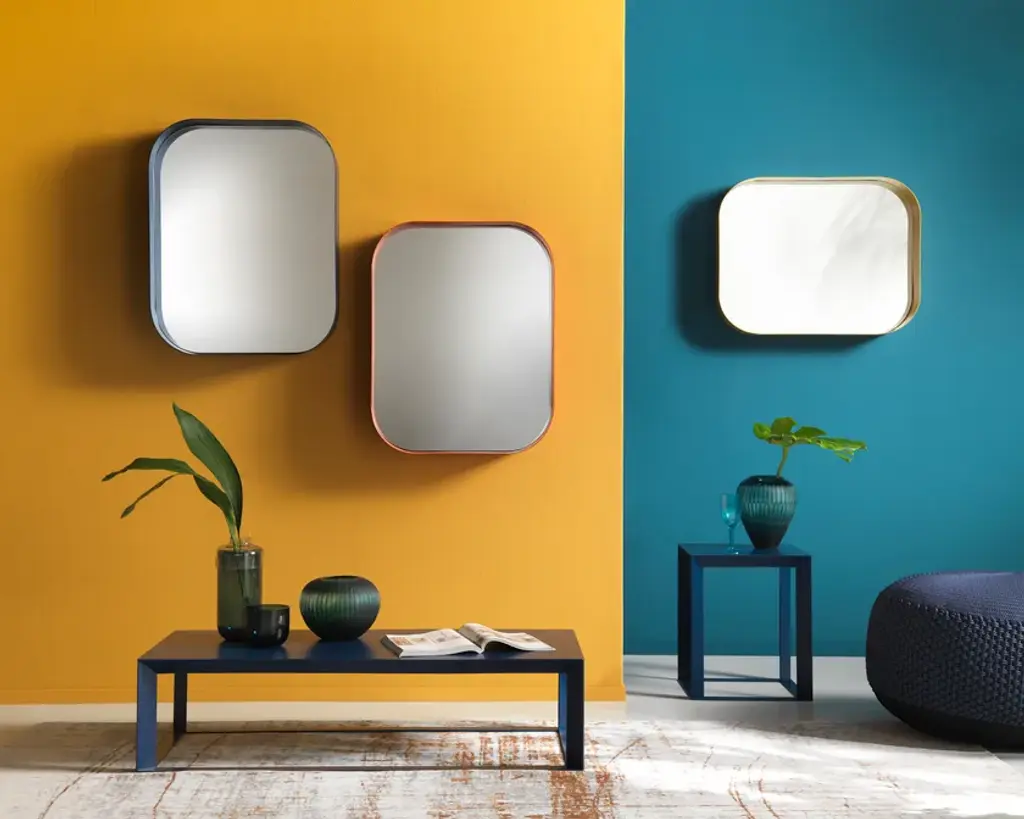 The Memedesign collection continues under the banner of color, which has always been its strong point and dominant leitmotiv. A minimalist but joyful design that is well represented by the wall mirror Diletta, designed by the designer, who dedicates himself with care and passion to the industrial design and artistic direction of various companies of the sector. The wide mirror with rounded corners can be hung both vertically and horizontally, creating funny juxtapositions of colors in several spaces. The practical shelf of 12,5 cm The practical 12,5 cm shelf functions as frame and makes Diletta a multifunctional and extremely versatile object. Available in all the colors of the range. Useful for the different rooms of the house, from the entry to the bedroom, it is a very interesting object interesting also for the contract hotel. Whole dimensions: cm 75 x 60 x 12,5 (shelf depth).