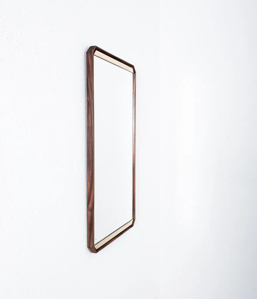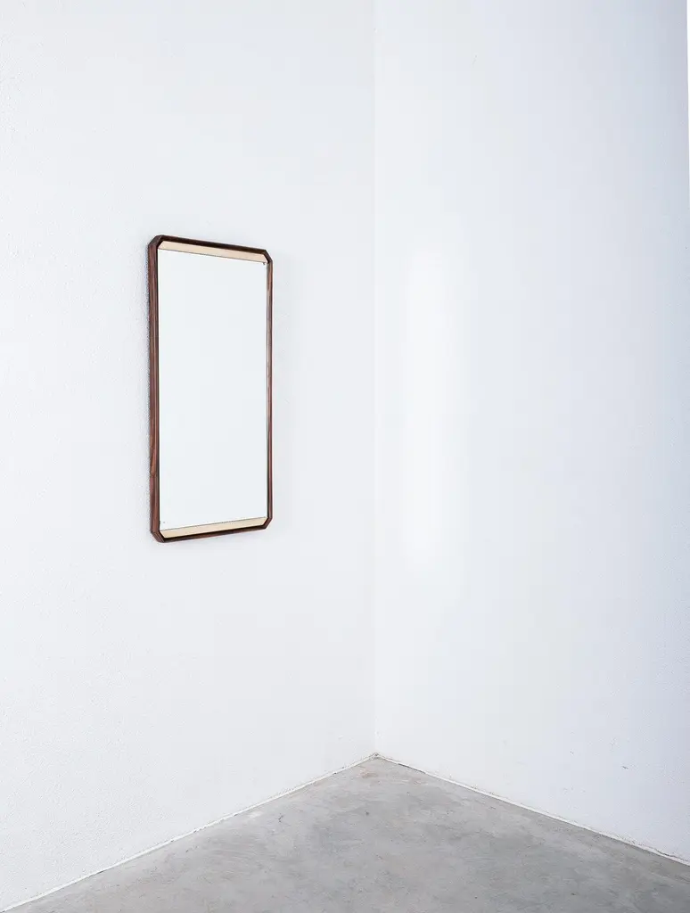 Two identical large rectangular walnut mirrors by Dino Cavalli, 1960's, ItalyWe have 2 identical pieces available, priced per mirror.Dimensions are 37.8" x 20.27 x 2" (Depth).Dino Cavalli, vintage walnut-wood mirror, midcentury, Italy. The mirrors show nice detailing with a rare brass trimming. It is in very good condition, with no cracks, chips or damages to the wood or glass. Superficial wear according to time and use is present (aging stains)Dimensions are 37.8" x 20.27 x 2" (Depth).