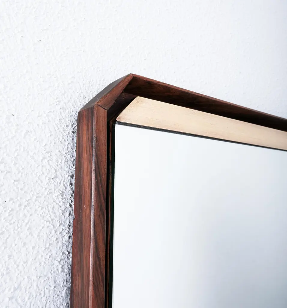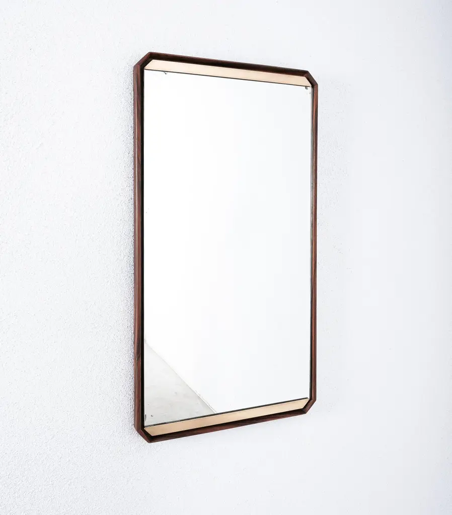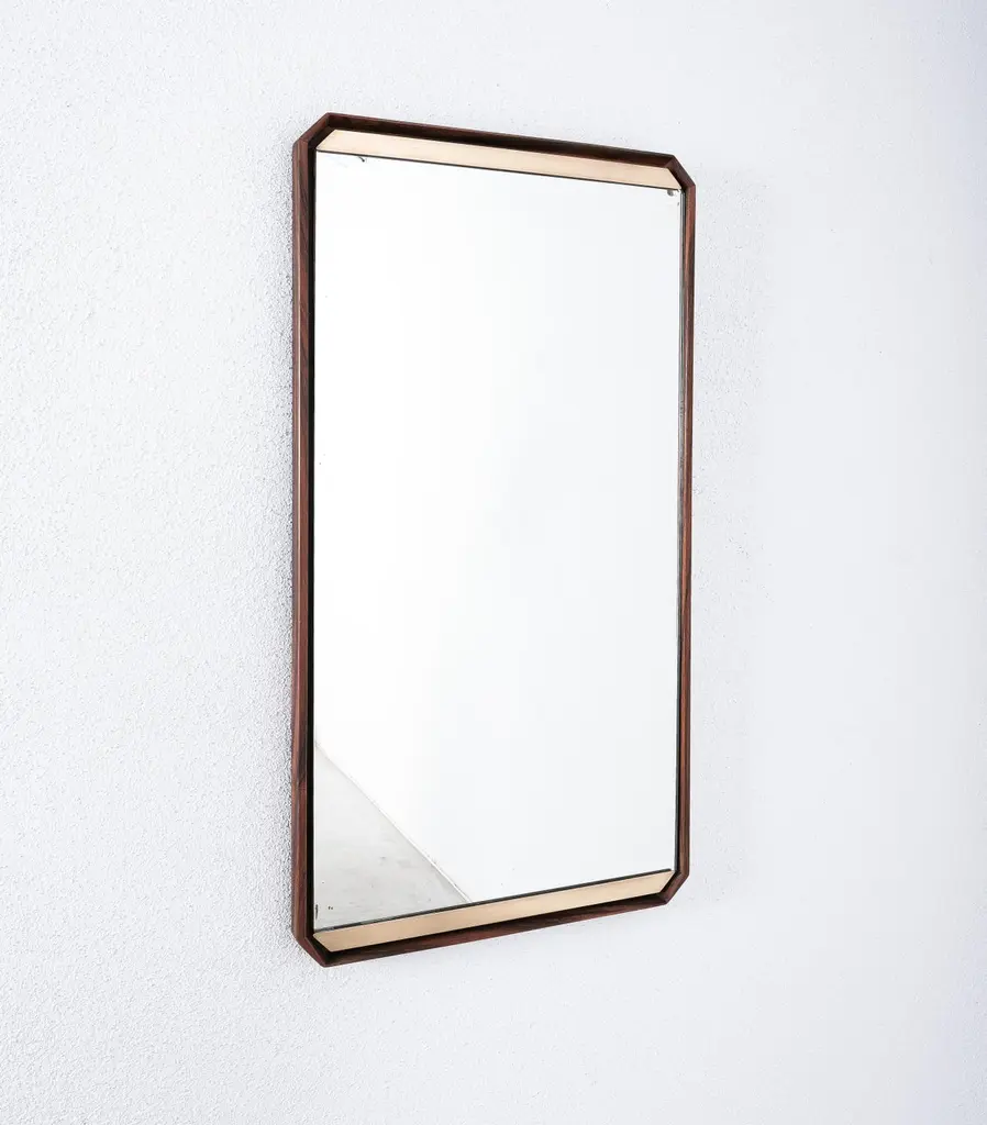Dino Cavalli Walnut Brass Mirrors (2) , Mid-Century Modern, Italy