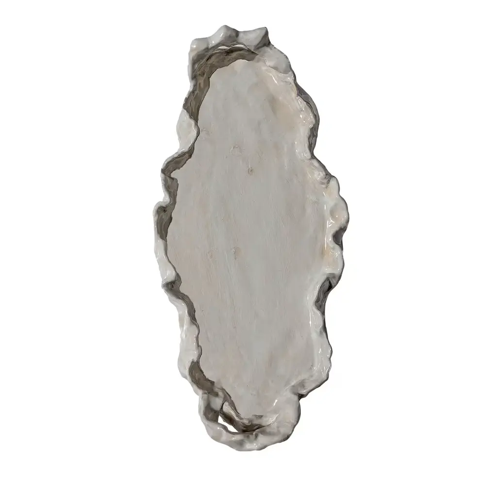 The Dirillo is a magnificent statement piece that commands attention. Made of glass, this mirror is imbued with a Grey Agate finish, giving it the appearance of natural agate stone. Organic banding patterns border a gorgeous beveled mirror at the center. Surrounding the geode's perimeter is an organic ebb and flow finished in a rich Antique Pewter. This piece is affixed with French cleats and can be hung in portrait or landscape orientations.