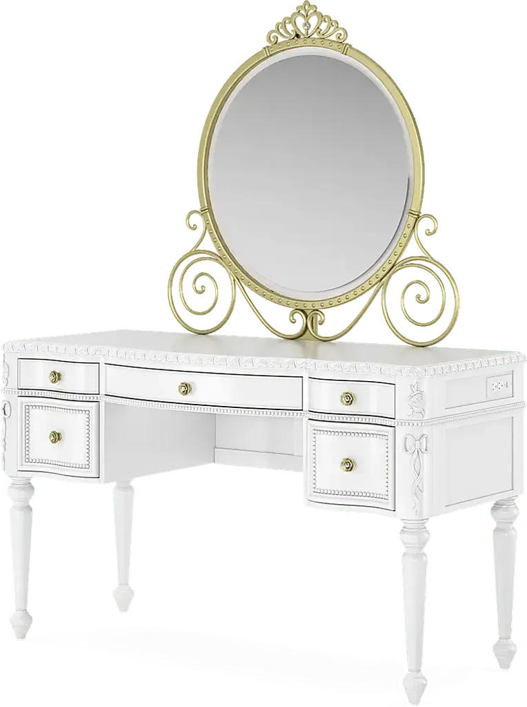 Disney Princess Sparkle White Desk With Carriage Mirror