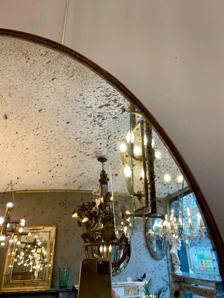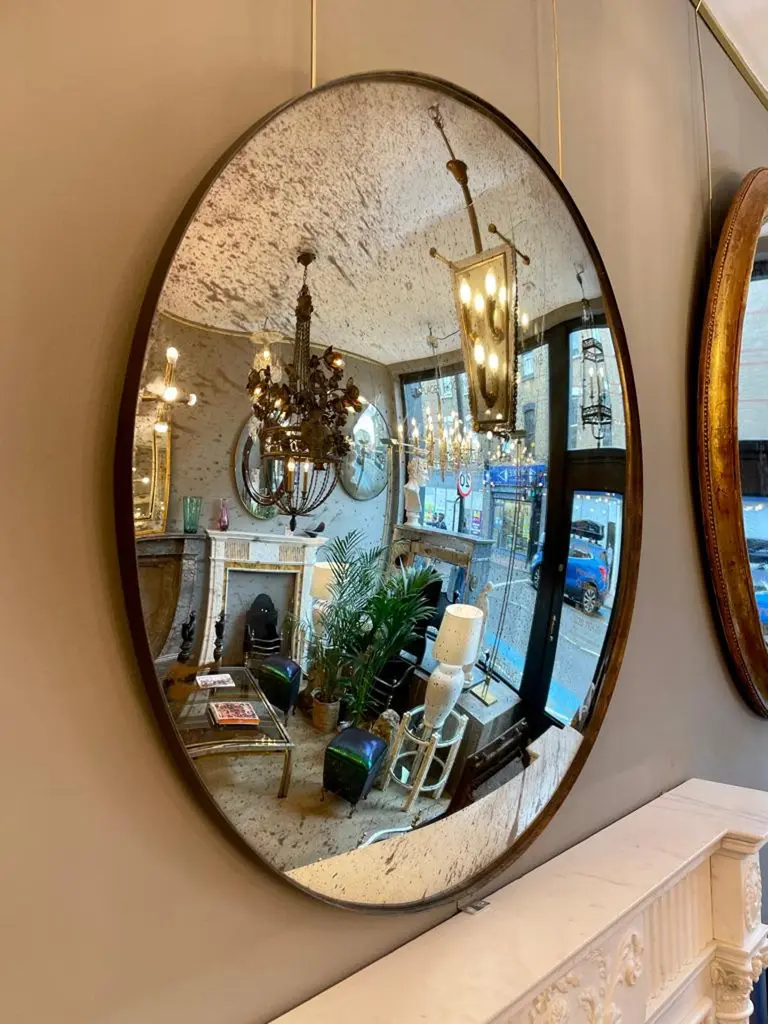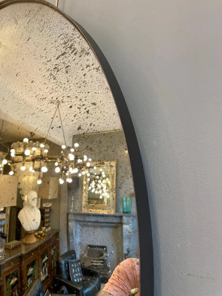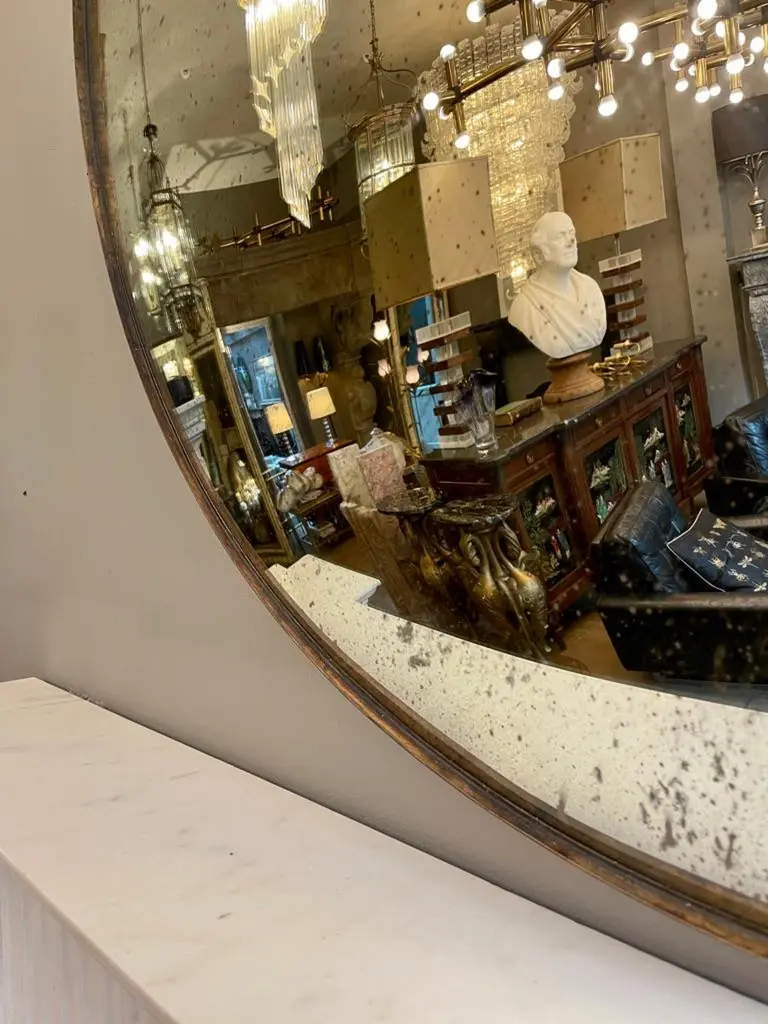 A distressed silver convex mirror, with bronze finish frame.Contemporary.