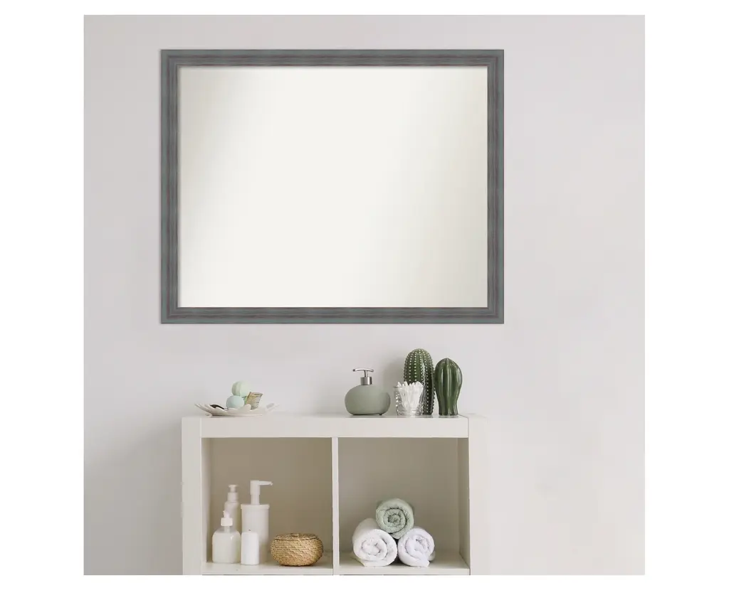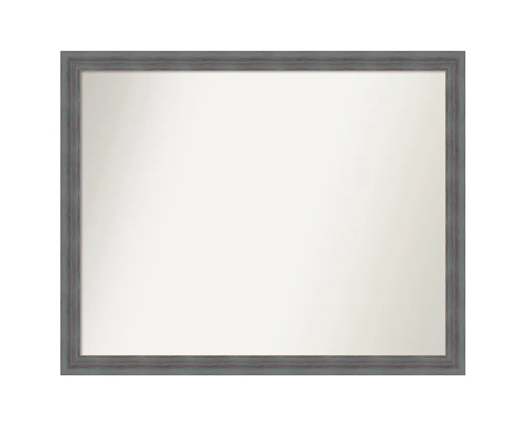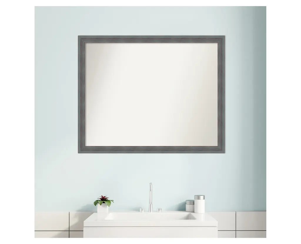 Give your bathroom the finishing touch with this 100% real wood Non-Beveled Wall Mirror framed with the Dixie Blue Grey Rustic frame. Individually made using traditional custom framing techniques, it has the quality you would expect from your local frame shop. It holds its value with premium finishing that can be appreciated up close.Features:MIRROR DETAILS: This mirror features premium glass for a clear, undistorted image and has a non-beveled surface to maximize the viewing area.WOOD FRAME DETAILS: The Dixie Blue Grey Rustic Frame is a rustic, blue-grey frame with a distressed, weathered finish on its flat surface. The frame is 1.5 in. wide and stands 0.75 in. off the wall.PROTECTIVE BACKING: This wall mirror is finished with a solid surface backing to ensure stability and prevent moisture and dust buildup.HASSLE-FREE HANGING: All mirrors have durable hanging hardware attached to the back to hang vertically or horizontally, along with hanging hooks and nails.ASSEMBLED IN THE USA: Each piece is assembled to order in Madison, WI USA.FOR HOME OR COMMERCIAL USE: Because of our attention to detail and focus on artistry, architects, interior designers, and homeowners alike choose this mirror to create beautiful living spaces.