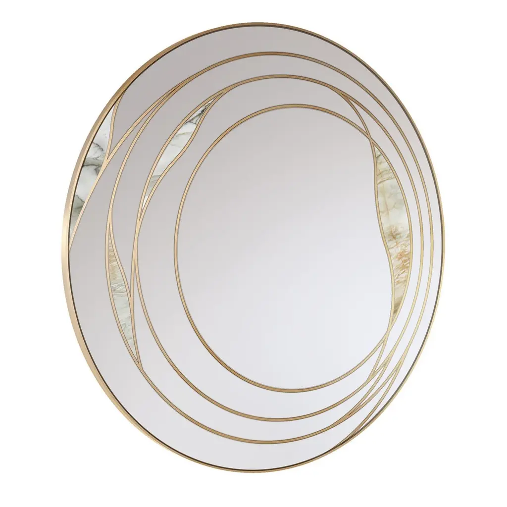 Domina I 120 Wall Mirror by Atlas ProjectDimensions: D 4/6 x Ø 120 cm. Materials: Calacatta Gold marble, brushed brass, mirror, and wood.Available in different finishes and sizes. Please contact us.DOMINADomina is the new stage of the Atlasproject journey. While the continuity of the design concept is preserved, the research focuses on delivering a message of flexibility and harmony of the forms. The vibrant sensuality of the lines and the refinement of the materials create a combination of exclusive elegance and sophistication.Our ProjectThe synergy between a thirty-year Italian craft experience and an original design, based on the need to research and develop topics up with the new aesthetic trends, gives birth to Atlasproject, an exclusive furniture collection conceived by the designer Massimiliano Giordano.Born and developed first in Copenhagen, then in Vienna and finally in Rome, the project is – as a matter of fact - a journey of contamination and encounter between the many cultures of the European Design.The production is focused on a dynamic dialogue between geometries and materials, which leads to collections of deep impact and elegance. Every piece merges essential geometric shapes with the most surprising materials, textures, and colors, as the result of a careful selection of natural materials and hand-processed metals.The Atlasproject collections are entirely made in Italy, where the tradition of artisanality is still a deep value, to ensure high-quality and long-life products.Of Neapolitan origins, Massimiliano Giordano grew up inthe family’s artistic atelier.The artisan knowledge and the design skills lead him to Atlasproject, a creative container inspired by the journey, leit motiv of his personal and professional life. In fact, the designer leaves from Naples towards Copenhagen, where he will stay for five years, and then for Vienna for five years more in the heart of the Mitteleuropean design, and finally in Rome, where he currently lives and works.The amazing connections between the encountered design souls actually represent the most significant stylistic figure of his works.