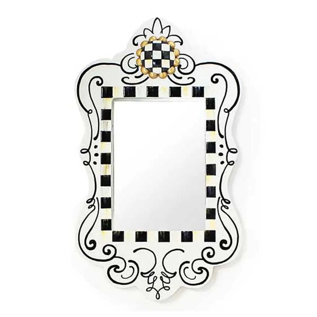 Here’s looking at you in this small wall mirror decorated with doodles and hand-painted Courtly Check®. It’s trimmed with a Courtly Check knob, too.