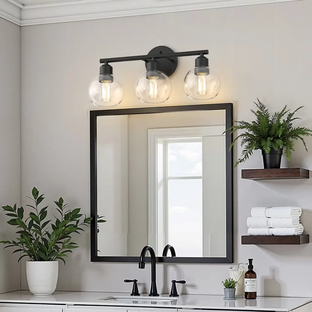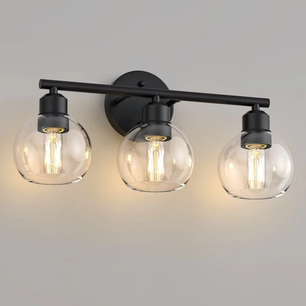 Globe glam meets sleek black metal. This 3-light vanity fixture brings balanced beauty and bold brightness to any bathroom. A must-have for spaces that deserve both style and function.