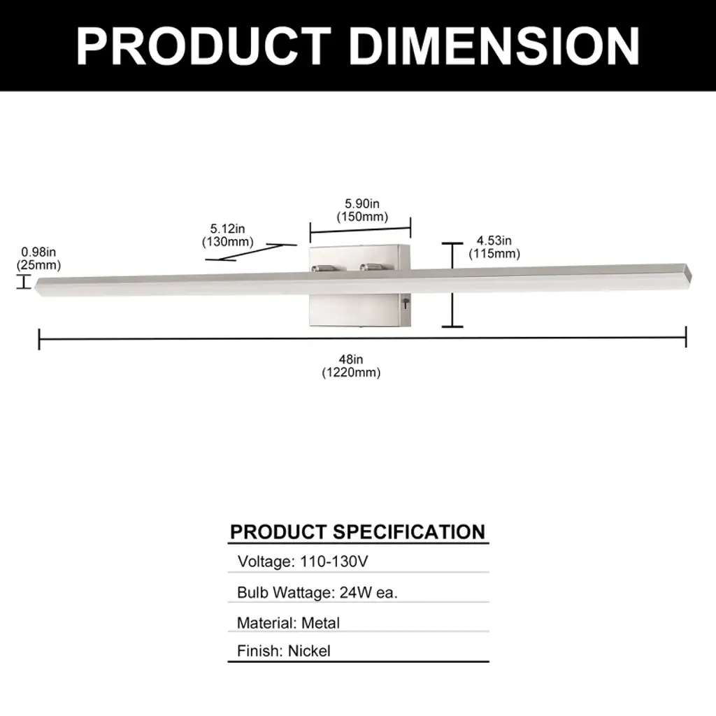 Doresshop 24-watt 1-light Nickel Integrated Led Vanity Light, 48 In. Modern Bathroom Wall Sconce, Adjustable Light Bar For Mirror