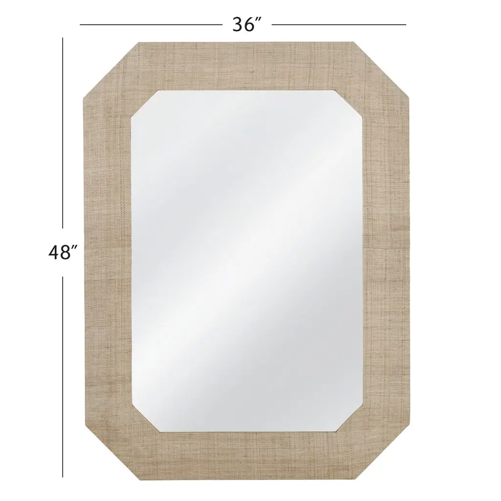 The Dorian Wall Mirror boasts a classic rectangular style with clipped corners, exuding a blend of boho and modern aesthetics. Its frame adds warmth and texture to any space. Crafted with attention to detail, this mirror effortlessly enhances the ambiance of your room.