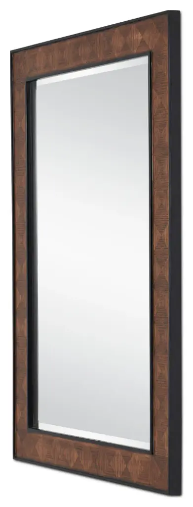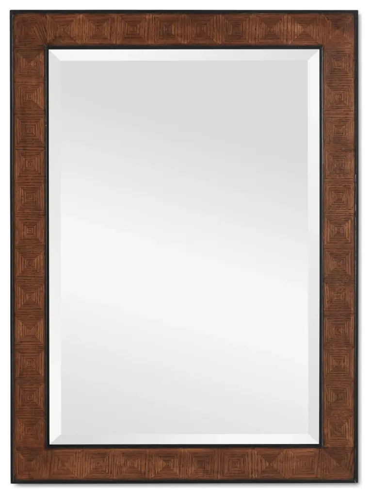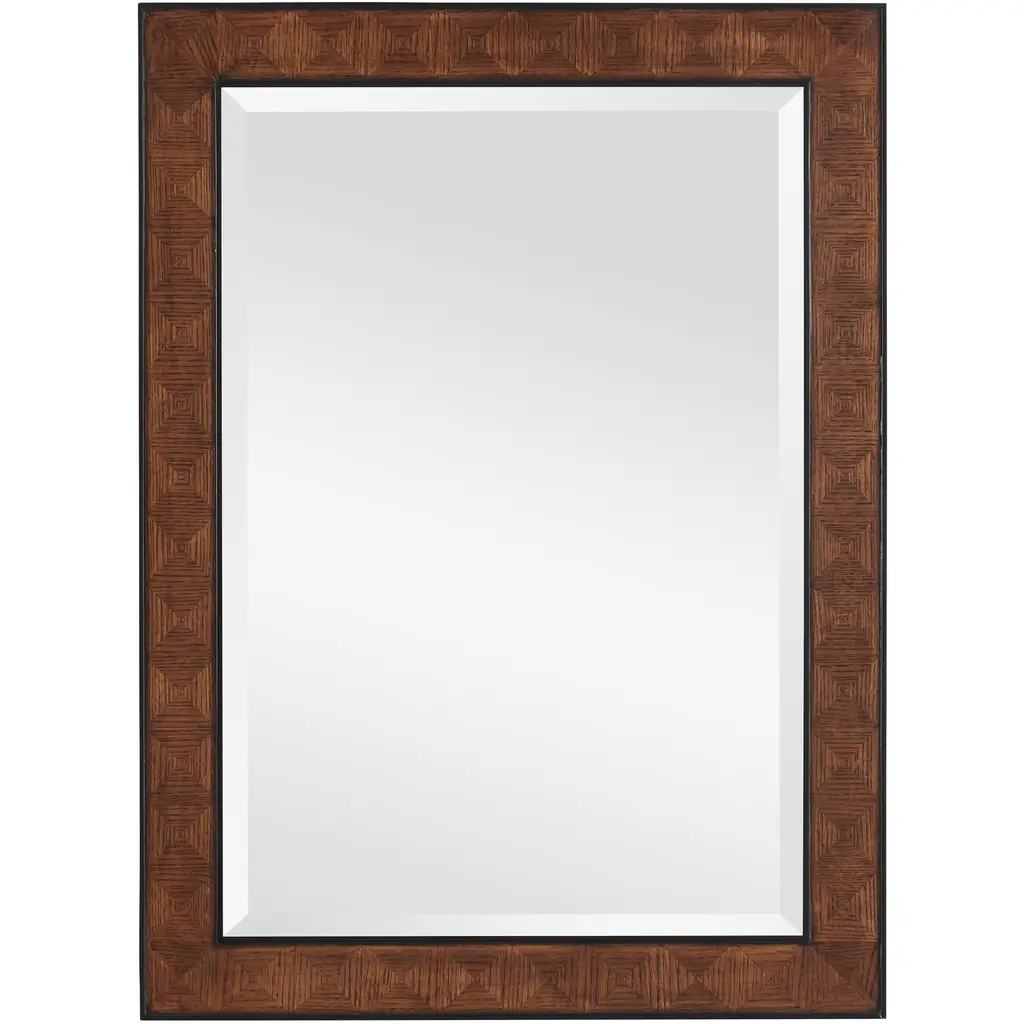 With gorgeously rich surface details, the Dorian Rectangular Mirror is clad in oak veneers that are laser cut and laid in place like pieces being fitted into a jigsaw puzzle. The frame of diamond box patterns are flanked by black racing stripes to add depth to the piece. The fact that each element is cut and hand-applied makes this an artisanal statement, and the wood mirror''s beveled edges add character to the creation. This lovely mirror was designed by Aimee Kurzner.