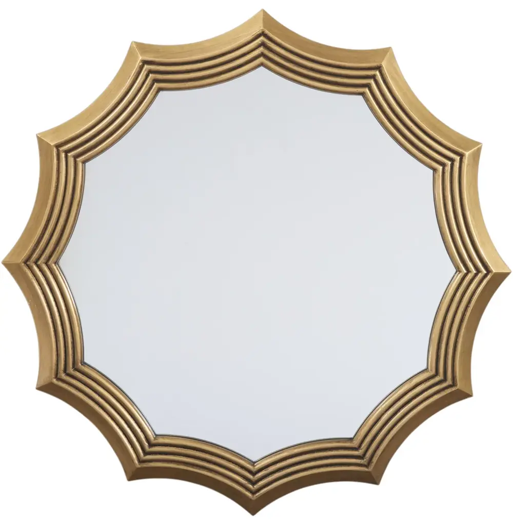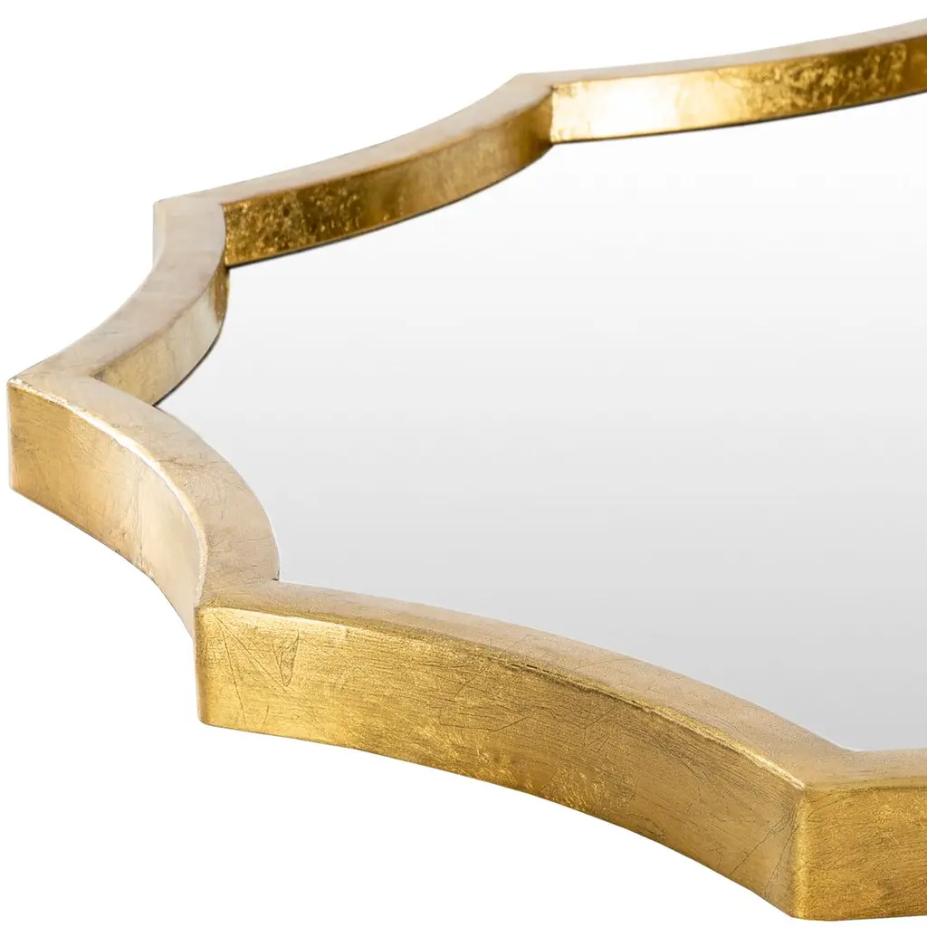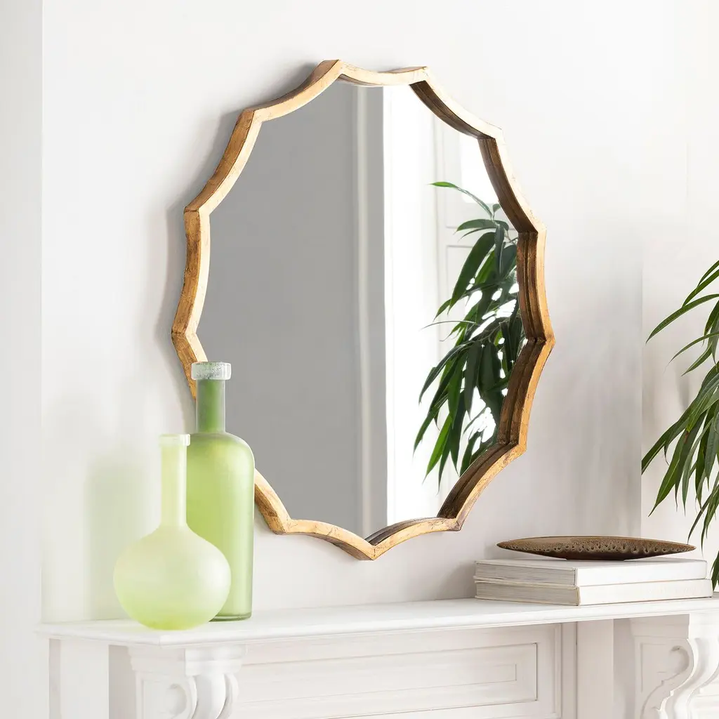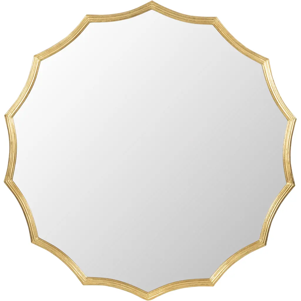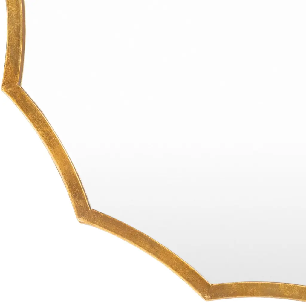 This finely crafted wall mirror brings eye-catching elegance to any room, thanks to its scalloped design and textural gold finish.
