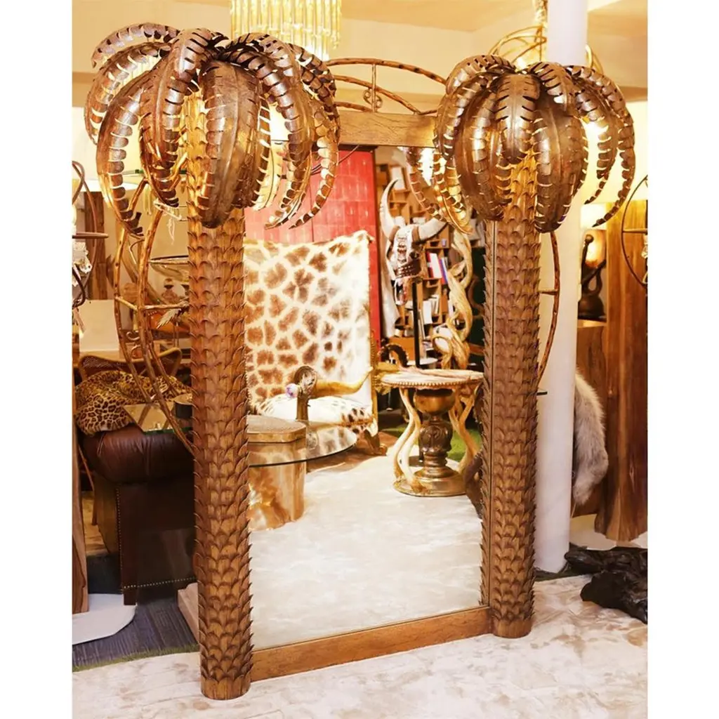 Mirror Double Palmer with frame in metal vintage brass finish.With clear mirror glass. 2 bulbs per palmer, 2 lamp holder per palmer, lamp holder type E14, max 40 watts. Bulbs not included. Made in France in 2024.