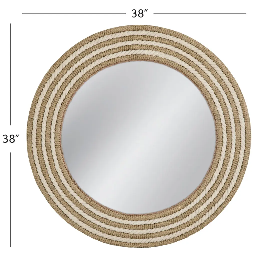 Dover 38" Round Rope Wall Mirror, Natural/white