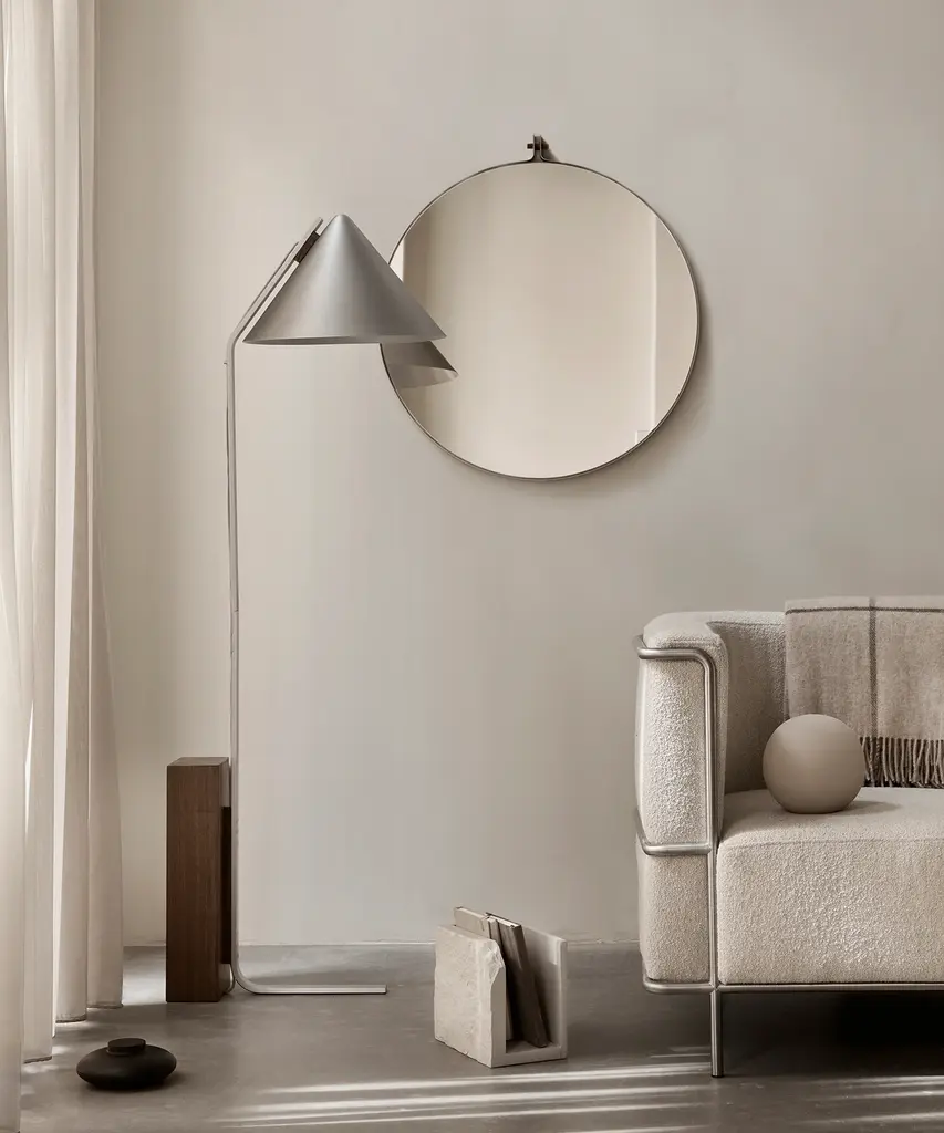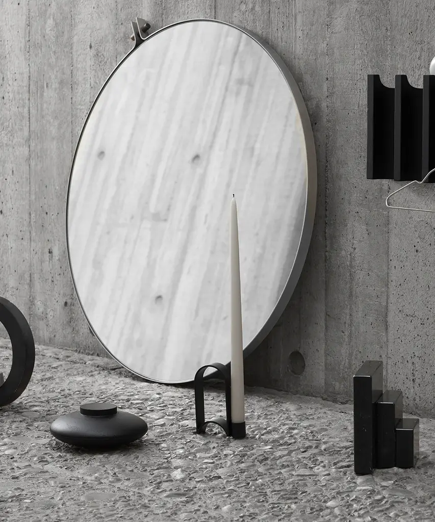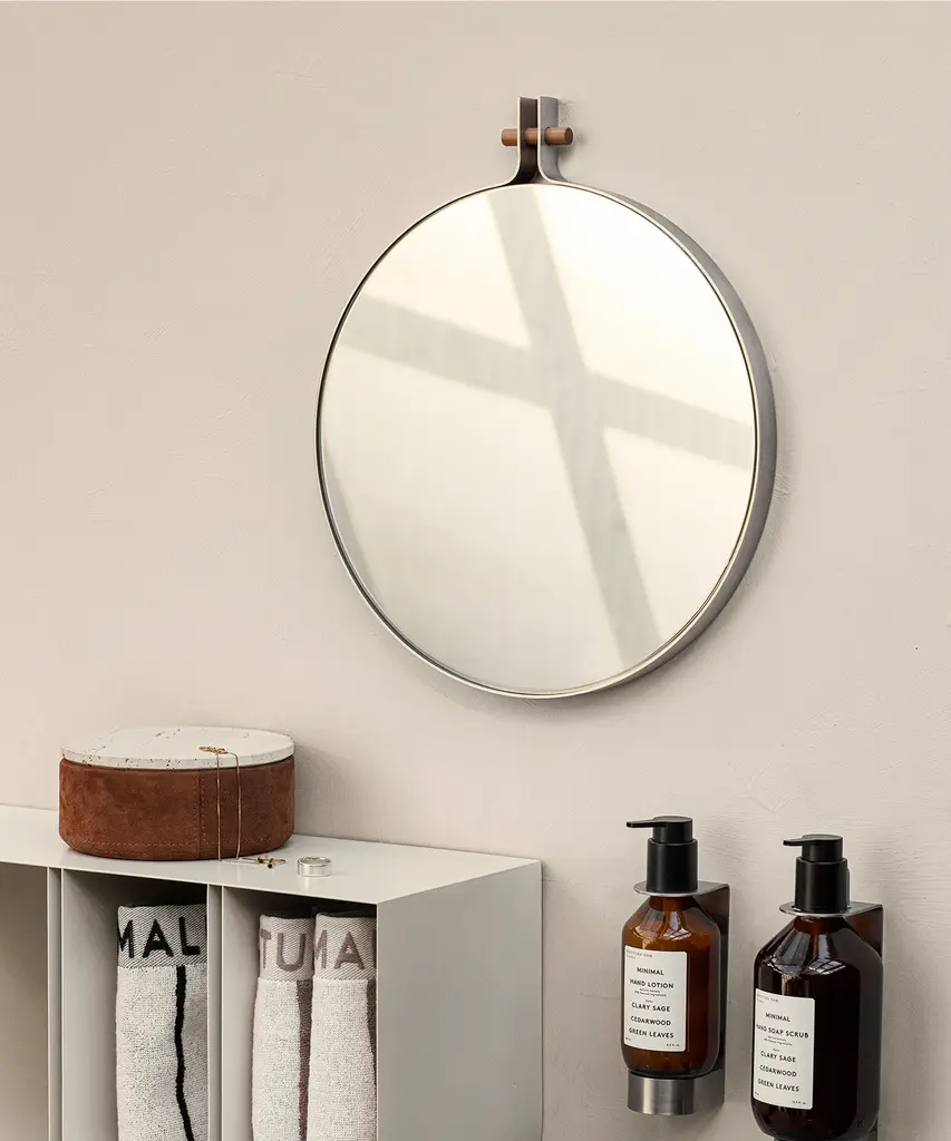 The Dowel mirror is minimalism at its finest – a proponent of the evident beauty in simplicity, and the evident strength in honest design. A mirror sleekly framed in steel, centered with a walnut plug, suitable for your bedroom, bathroom, or your preferred space for reflection.Designed by Kristina Dam Studio in Copenhagen, Denmark.